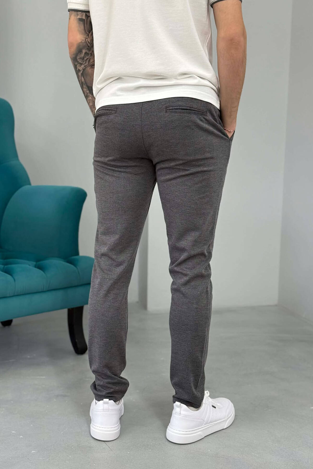ONE COLOR SEMI ELASTIC WAIST MEN PANTS GREY/GRI