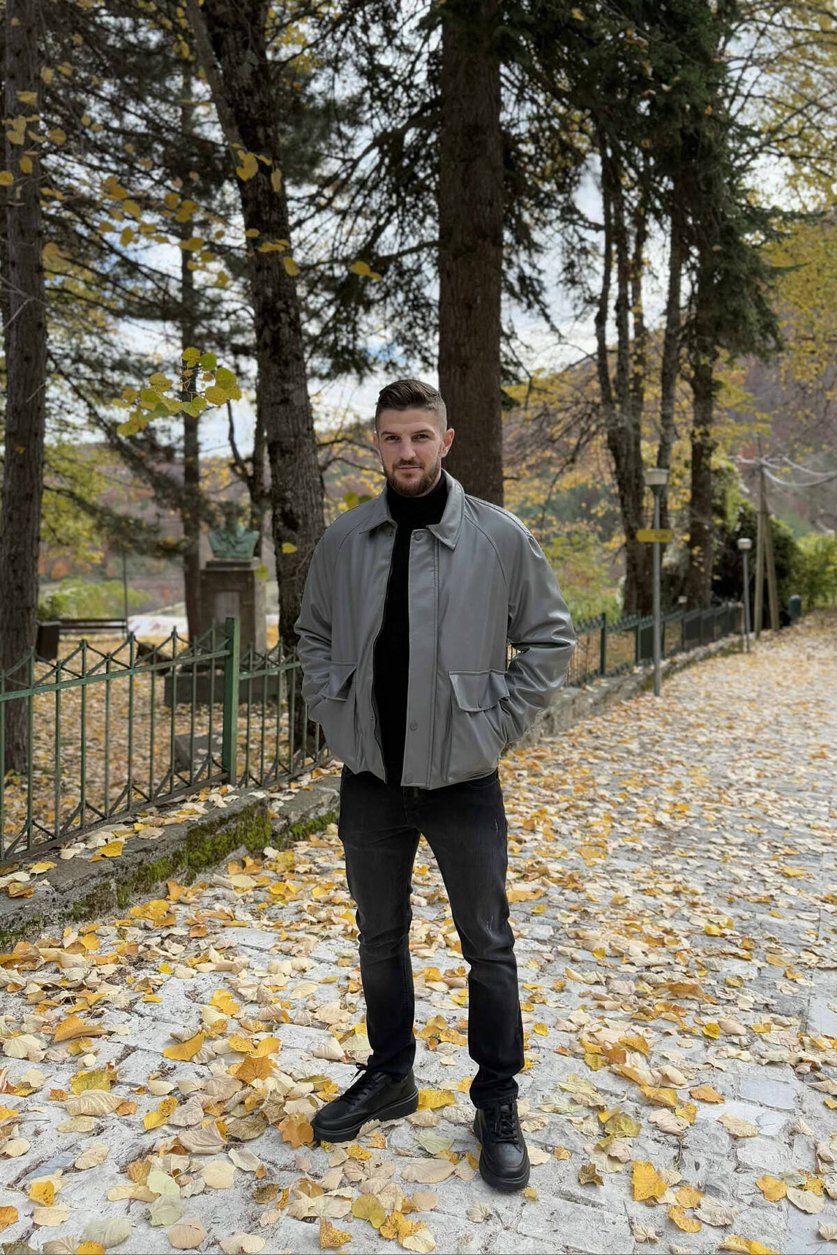 LEATHER BUTTONED AND ZIPPER MEN JACKET GREY/GRI