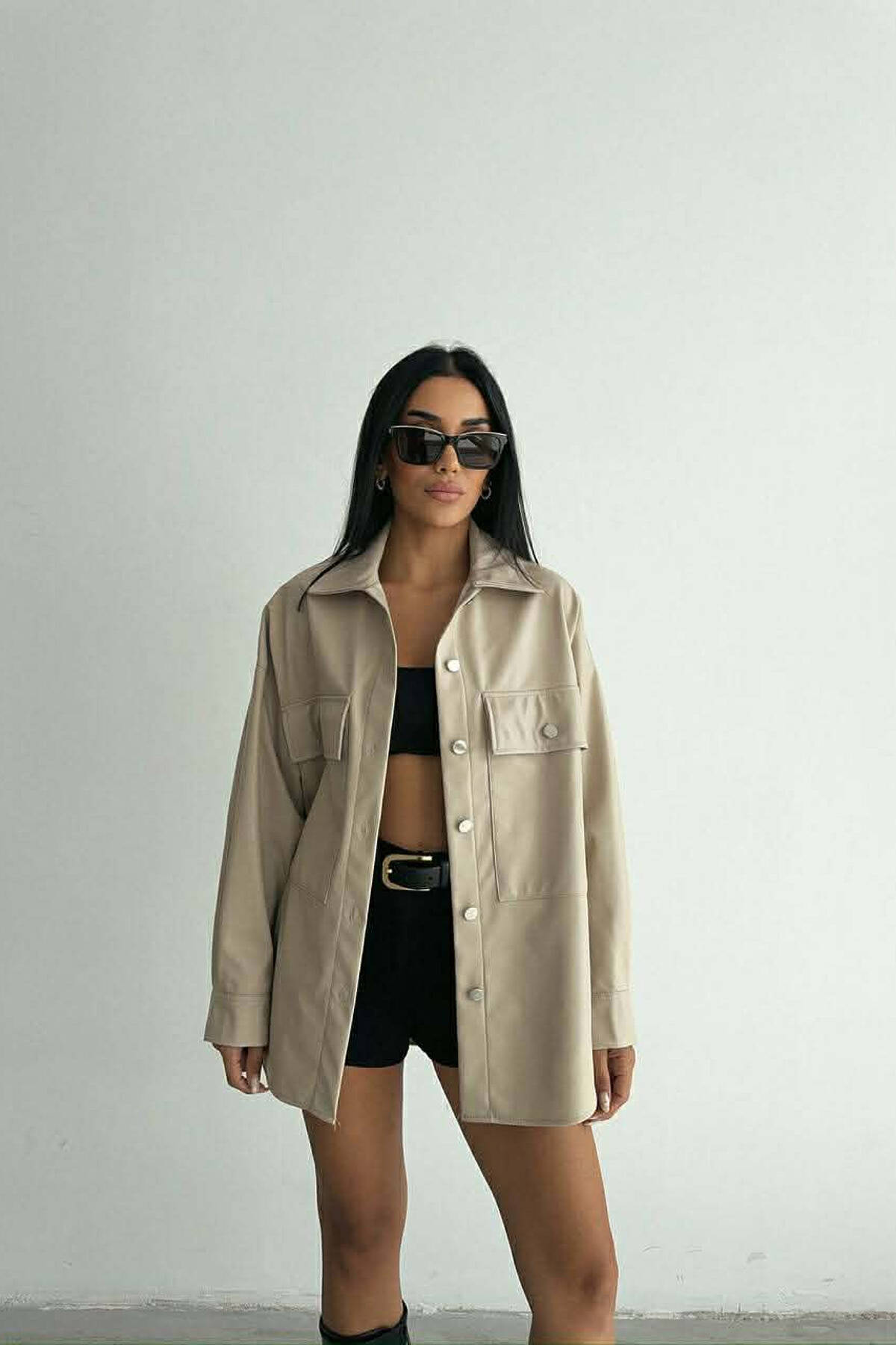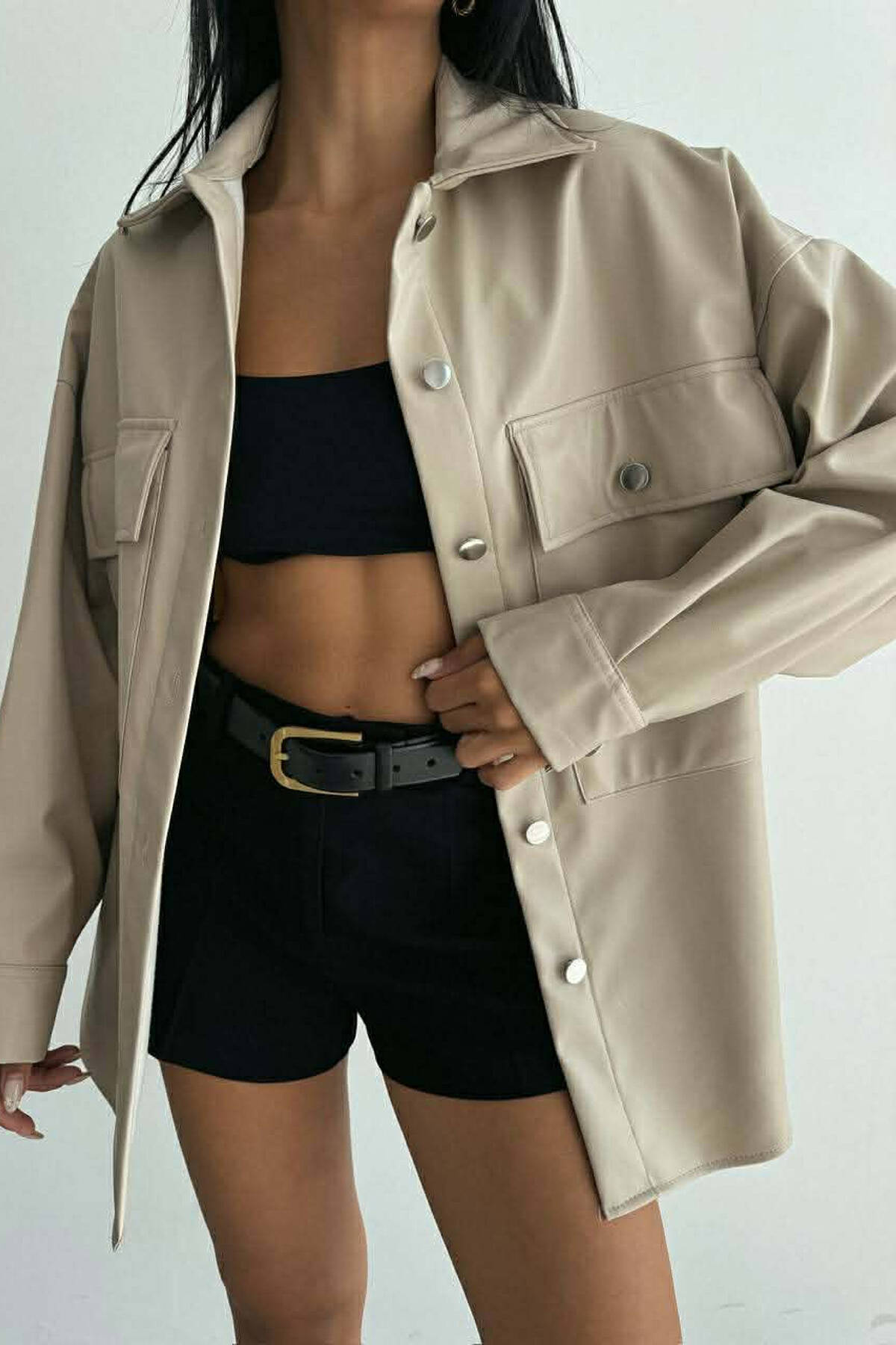 LEATHER BUTTONS WOMAN JACKET CREAM/KREM
