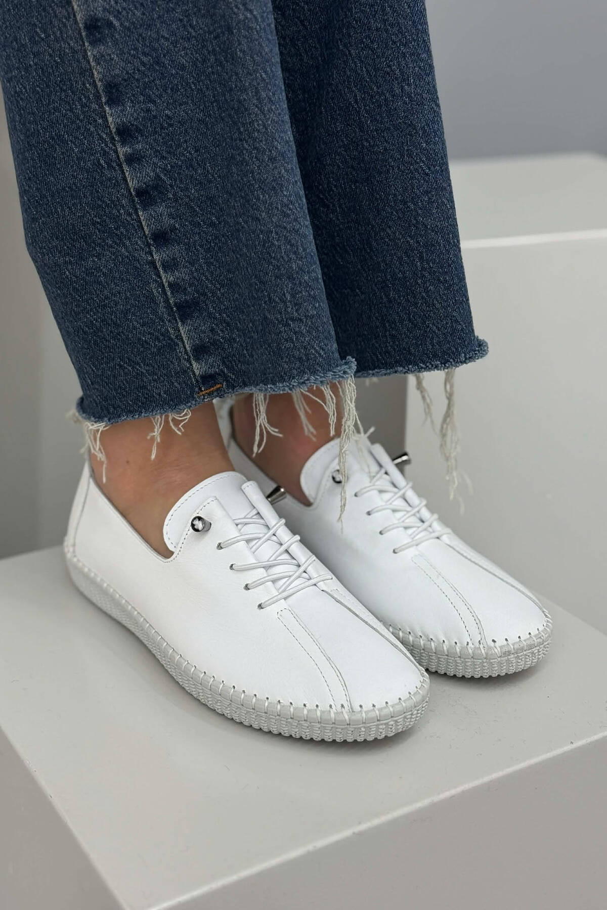 LEATHER COMFORT EVERYDAY WOMEN SNEAKERS WHITE-E BARDHE