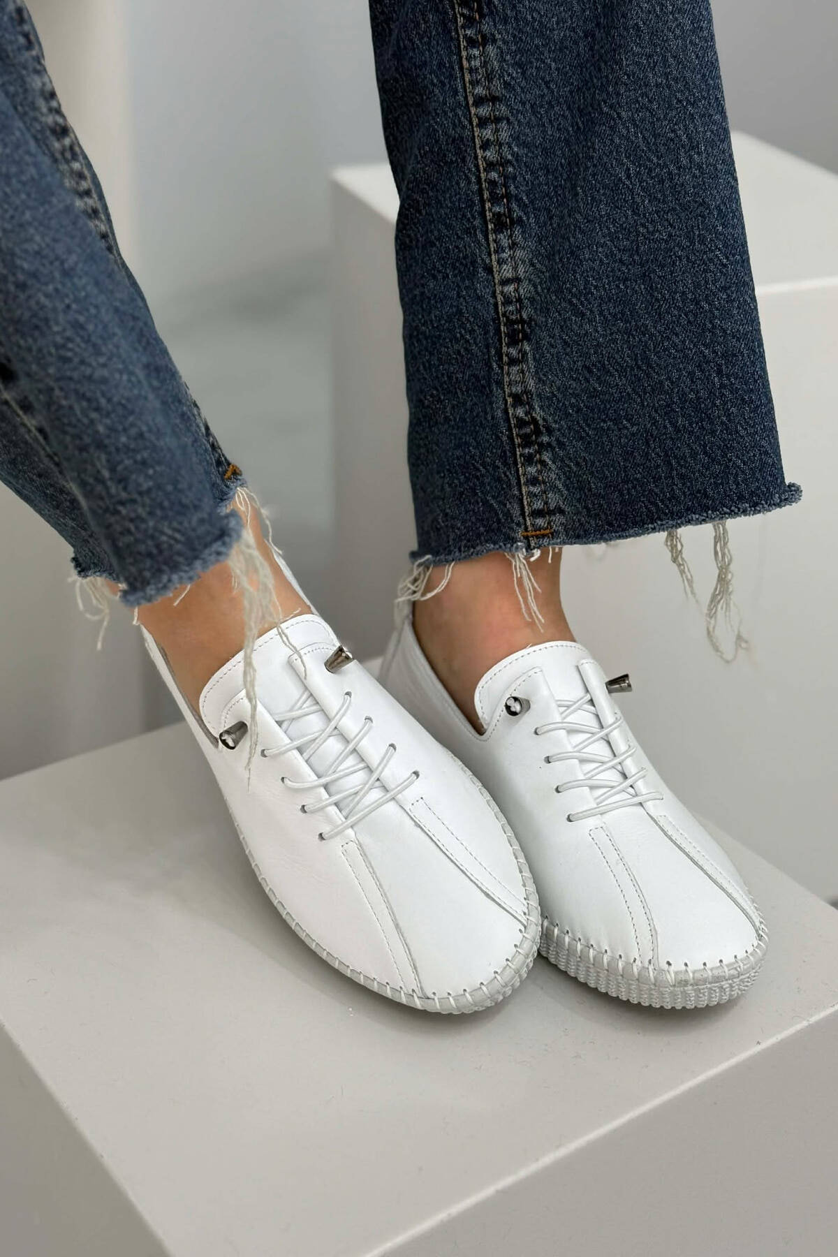 ONE COLOR LEATHER LACING COMFORT WOMEN SNEAKERS WHITE-E BARDHE