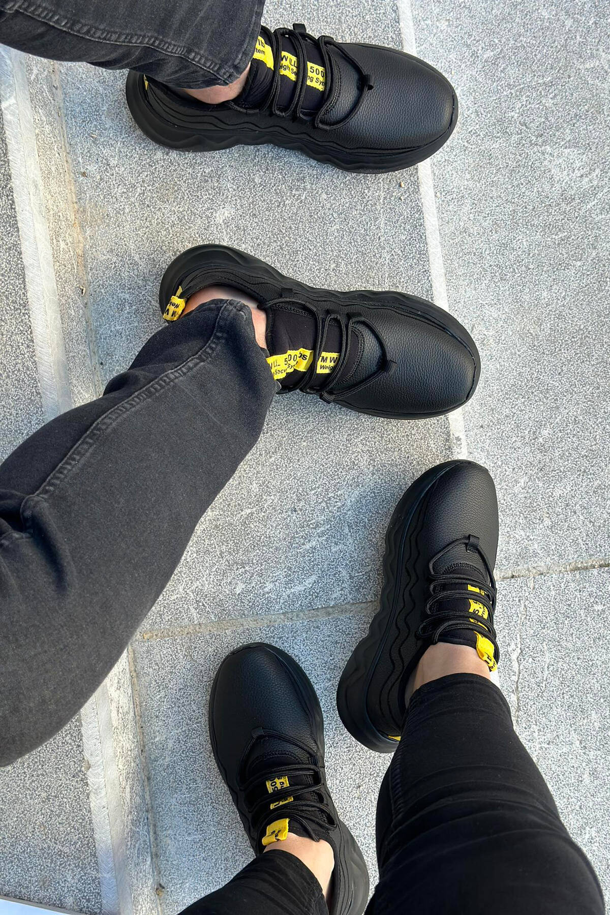 LEATHER LACING WOMAN SNEAKERS BLACK-YELLOW/ZEVE