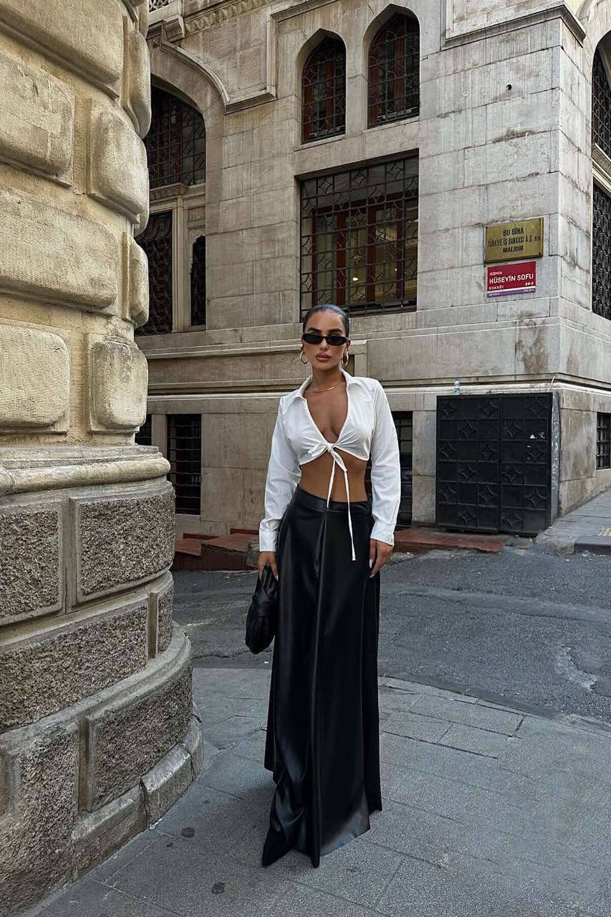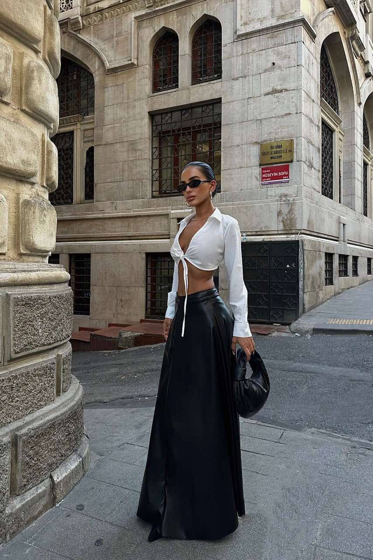 Who would resist a skirt like this? Class and elegance merge together in her long piece of leather resulting in a super special and beautiful outfit.