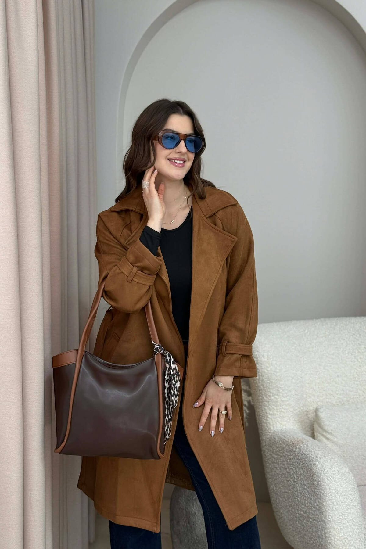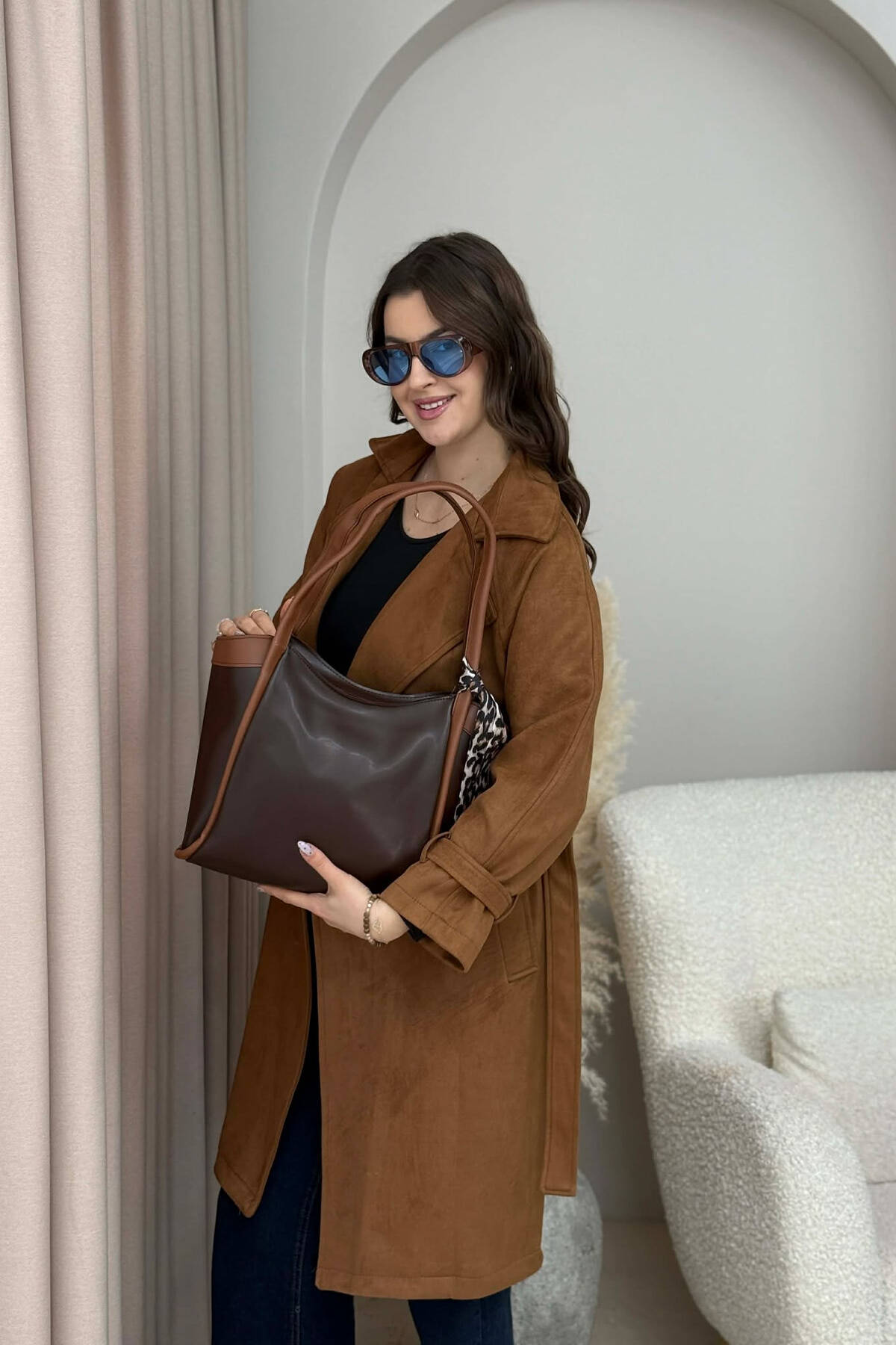 ÇANTE LEKURE ME DETAJIN E SHALLIT PER FEMRA NE NGJYRE KAFE TE ERRET