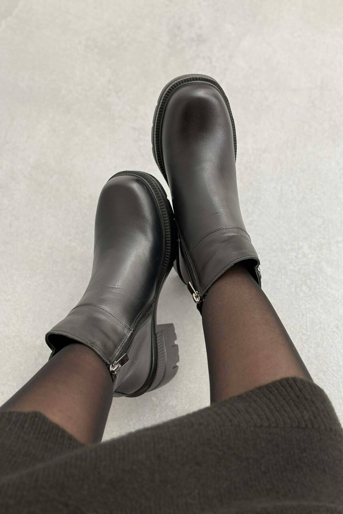 LEATHER SIDE ZIPPER WOMEN ANKLE BOOTS BROWN/KAFE