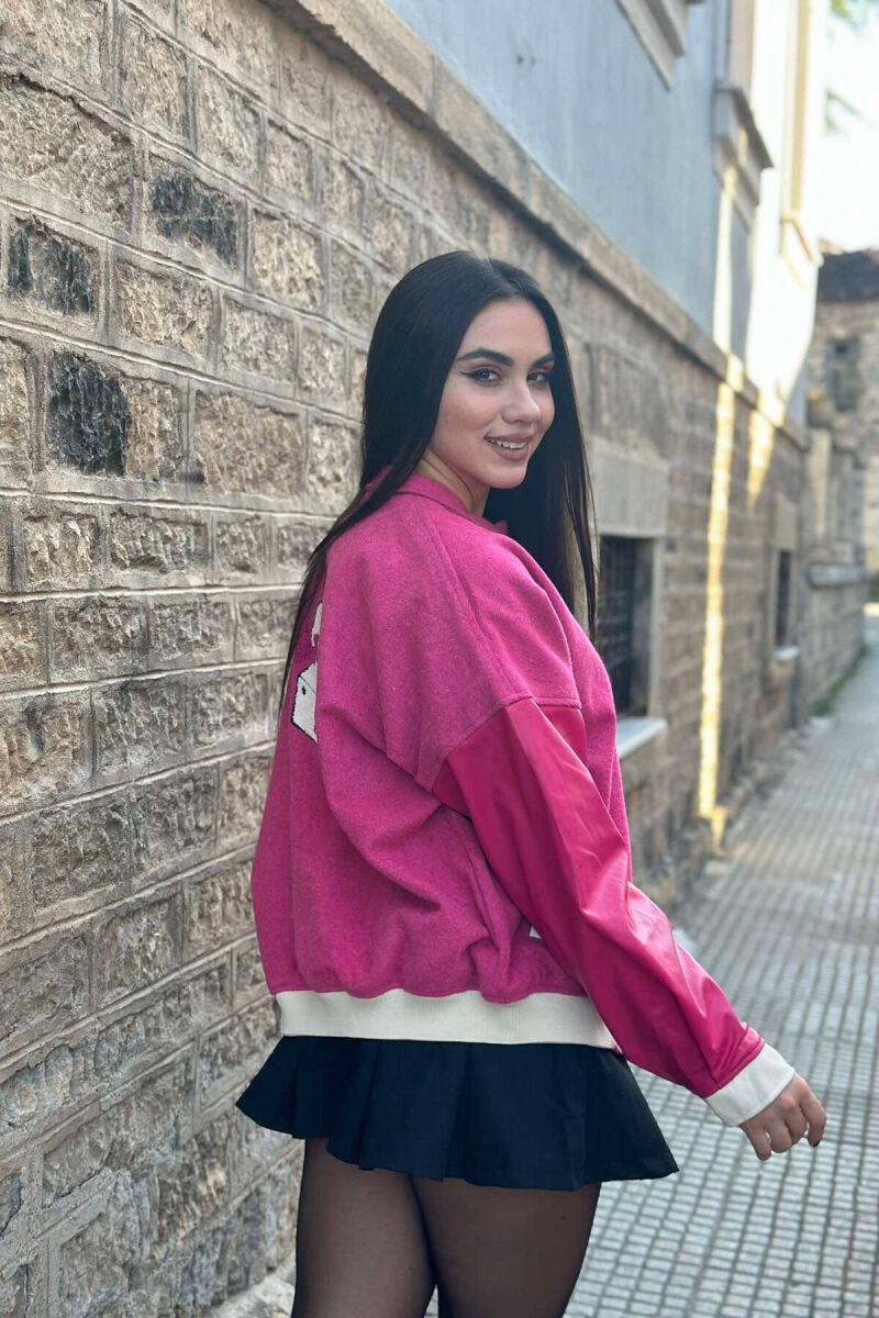 We bring you bomber jackets for women. Comfortable and warm to the max, it comes with leather sleeve details, button fastening and the design of the letter S on one side of the torso.