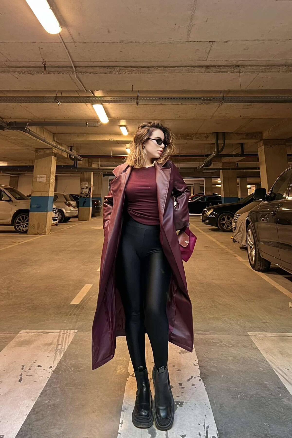 LEATHER WOMEN COAT IN BURGUNDY COLOR