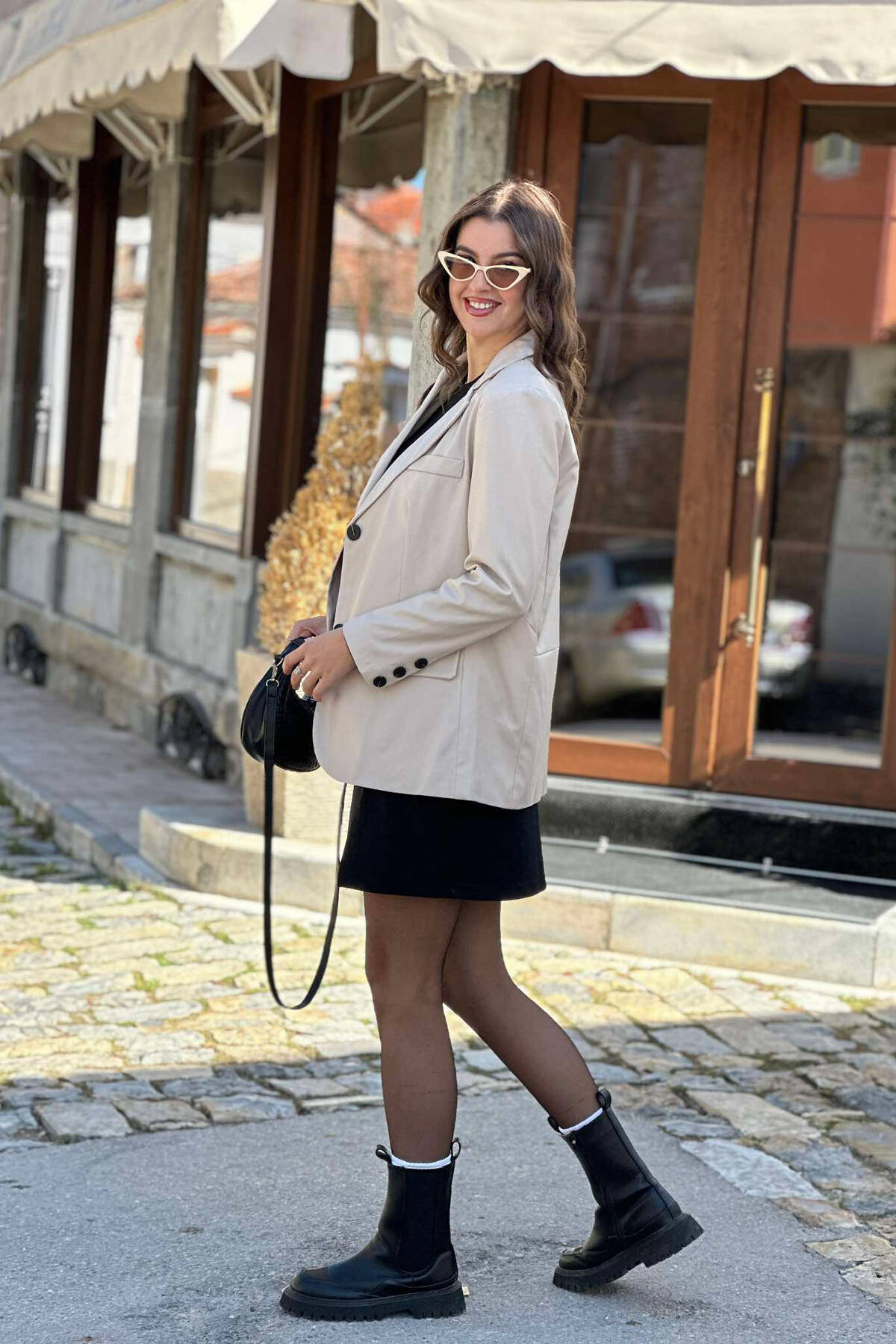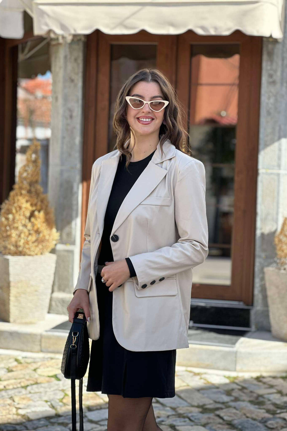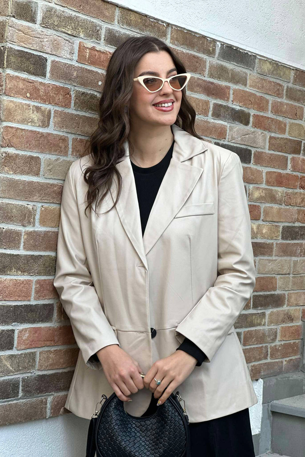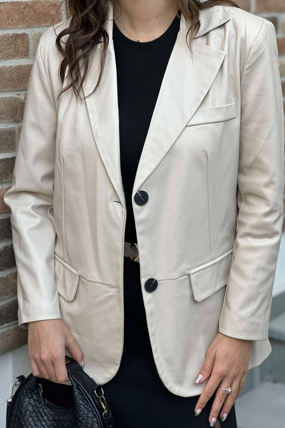 Xhaketë Lëkure Një Ngjyrëshe Për Femra Në Ngjyrën Krem