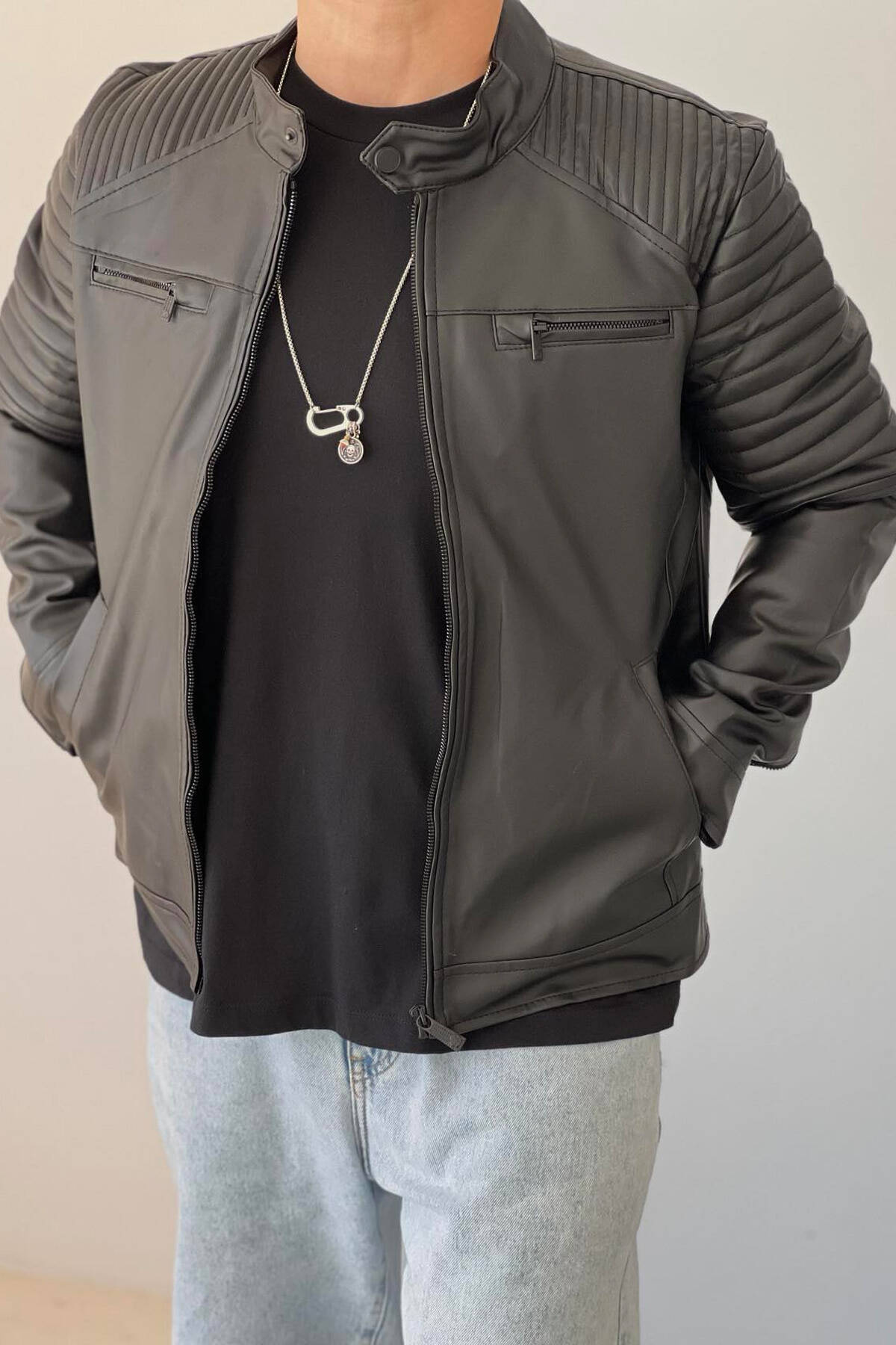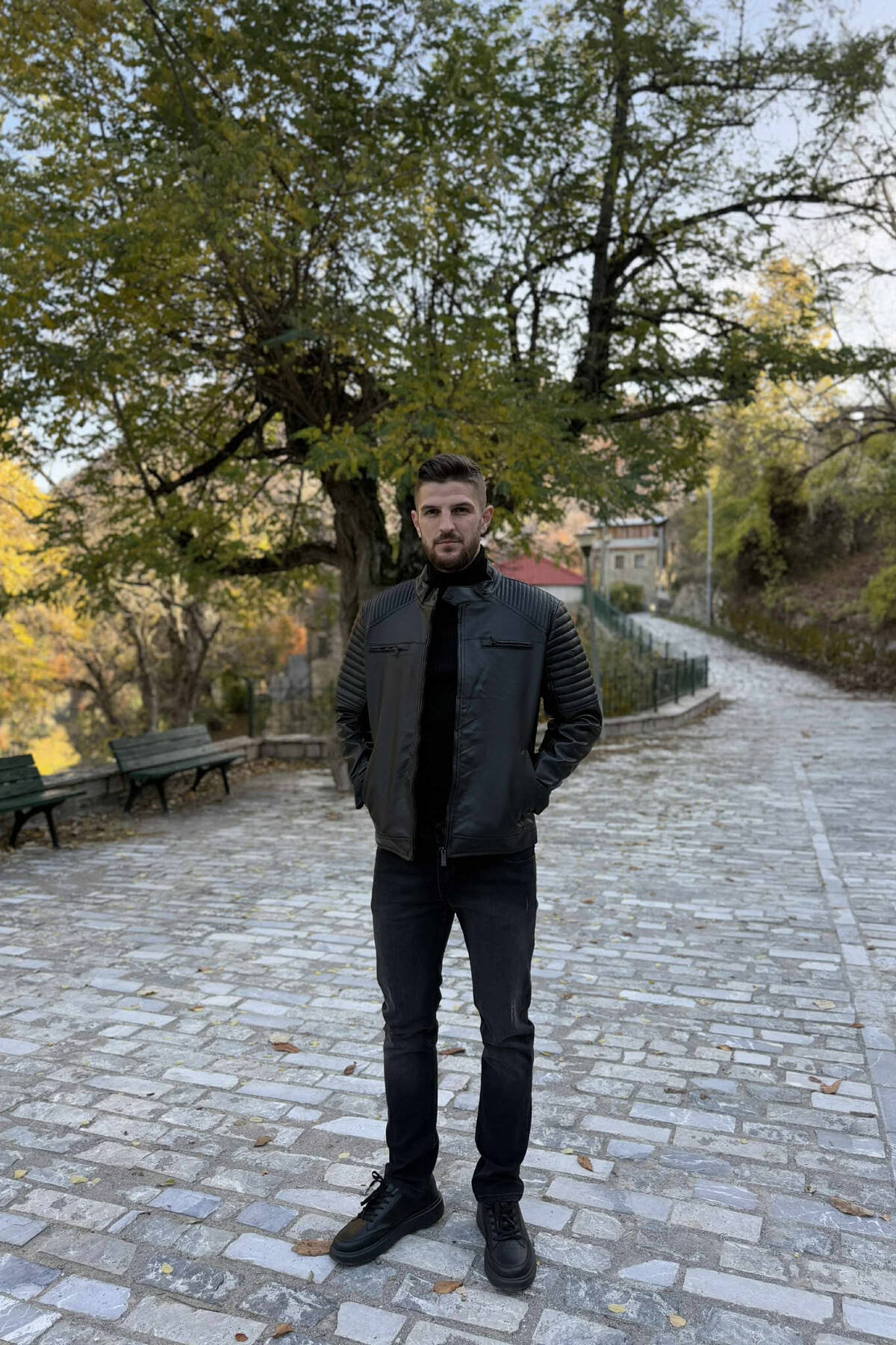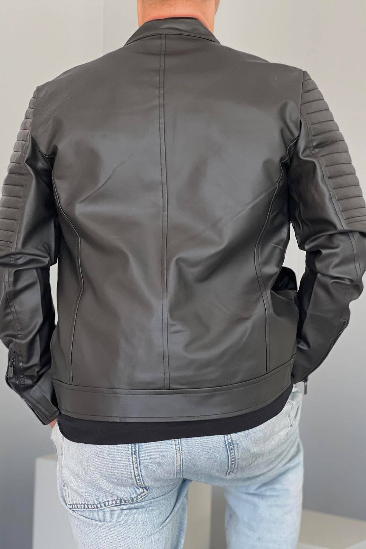 Xhaketë Lëkure Një Ngjyrëshe Për Meshkuj Në Ngjyrën E Zezë