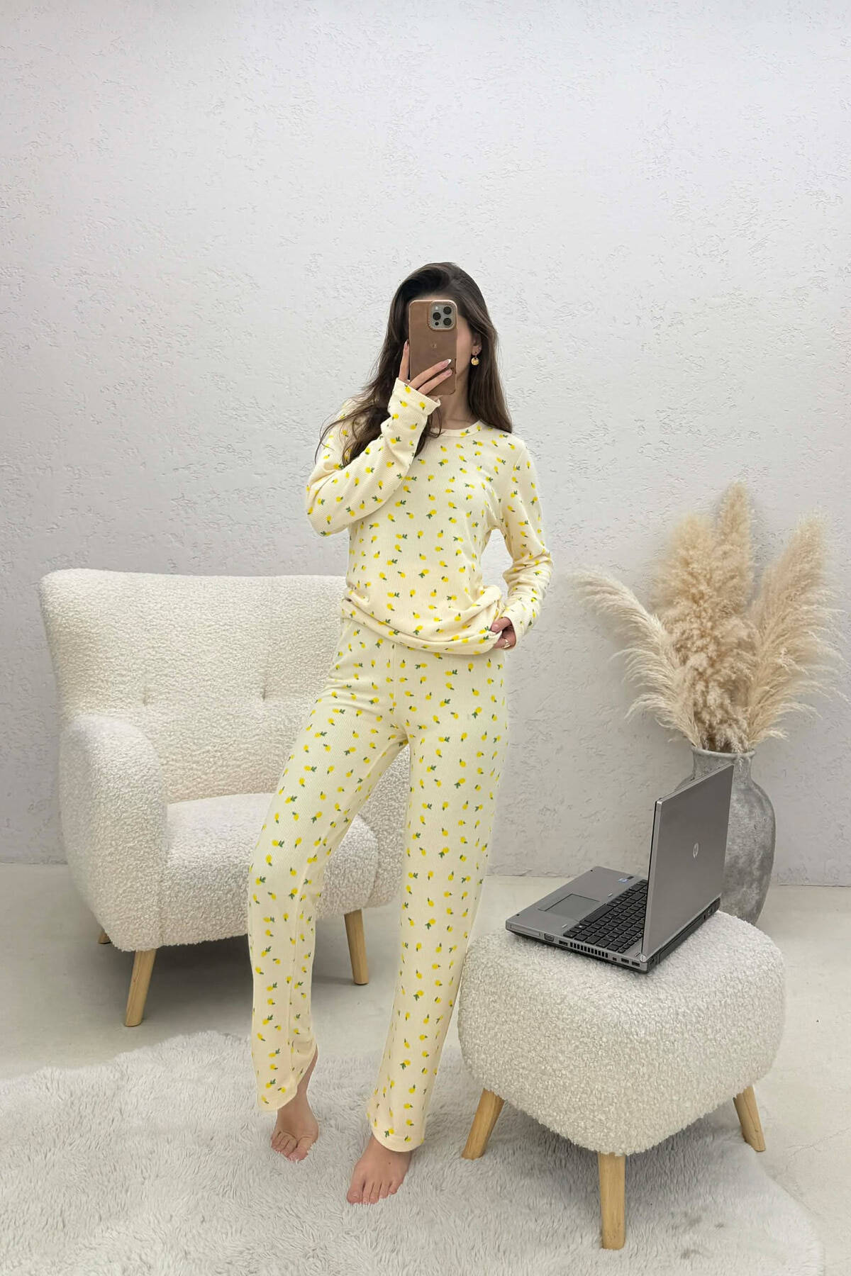 LEMONS DESIGN SWEATSHIRT+TROUSERS WOMEN PYJAMAS YELLOW/E VERDHE