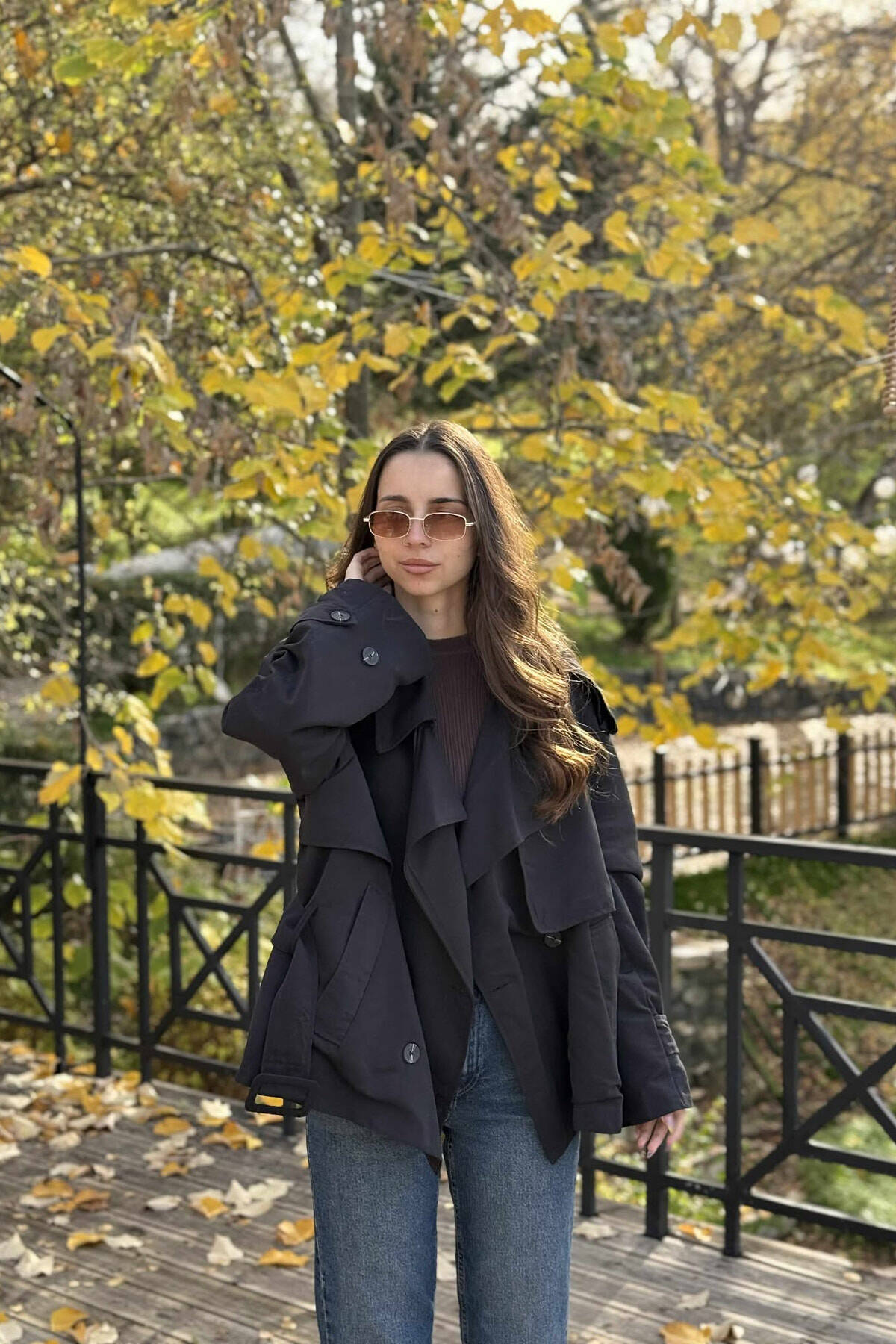 BELT DETAILS FLUFFY WOMEN JACKET DARK GREY/GEE