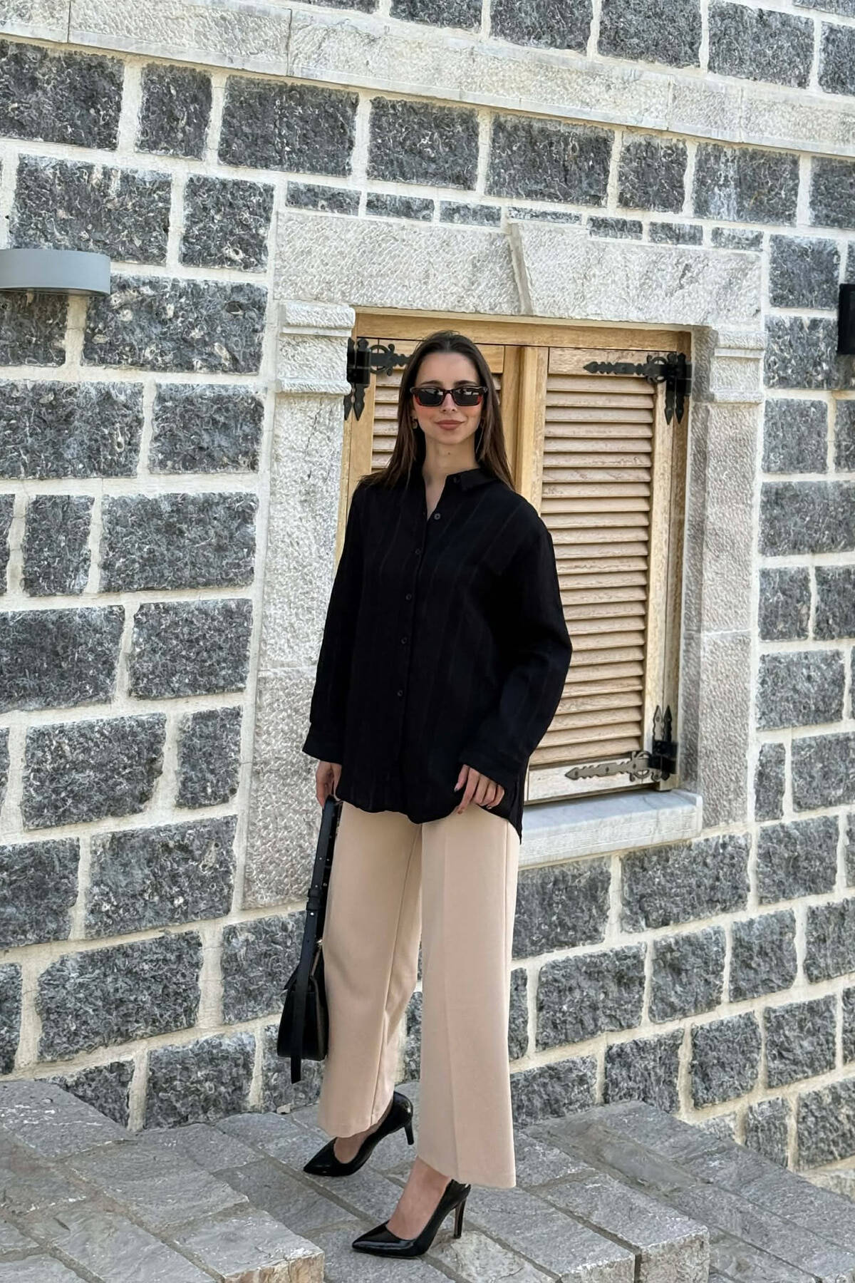 LINEN BLEND SHINY LINES WOMAN SHIRT BLACK/ E ZEZE