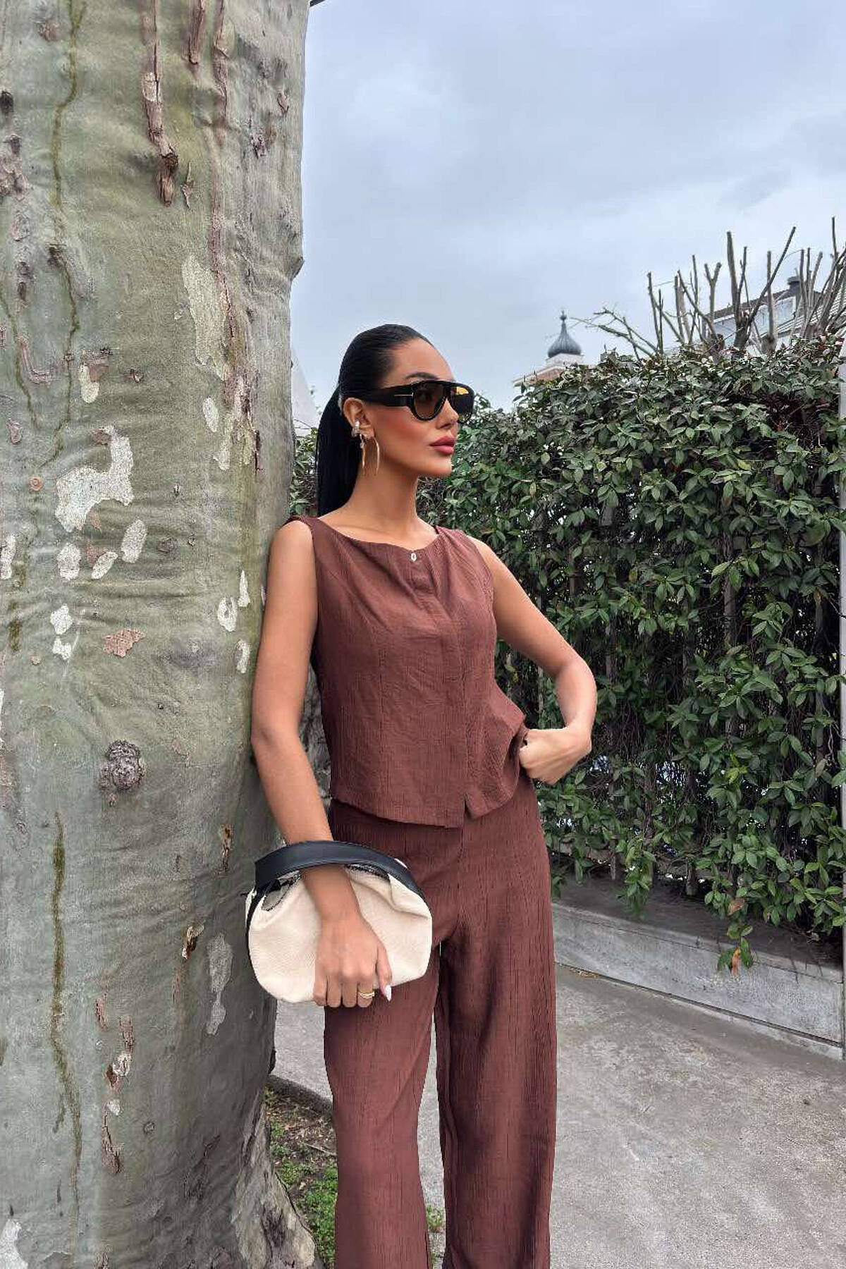 ONE COLOR TANK TOP + TROUSERS WOMAN SET BROWN/KAFE