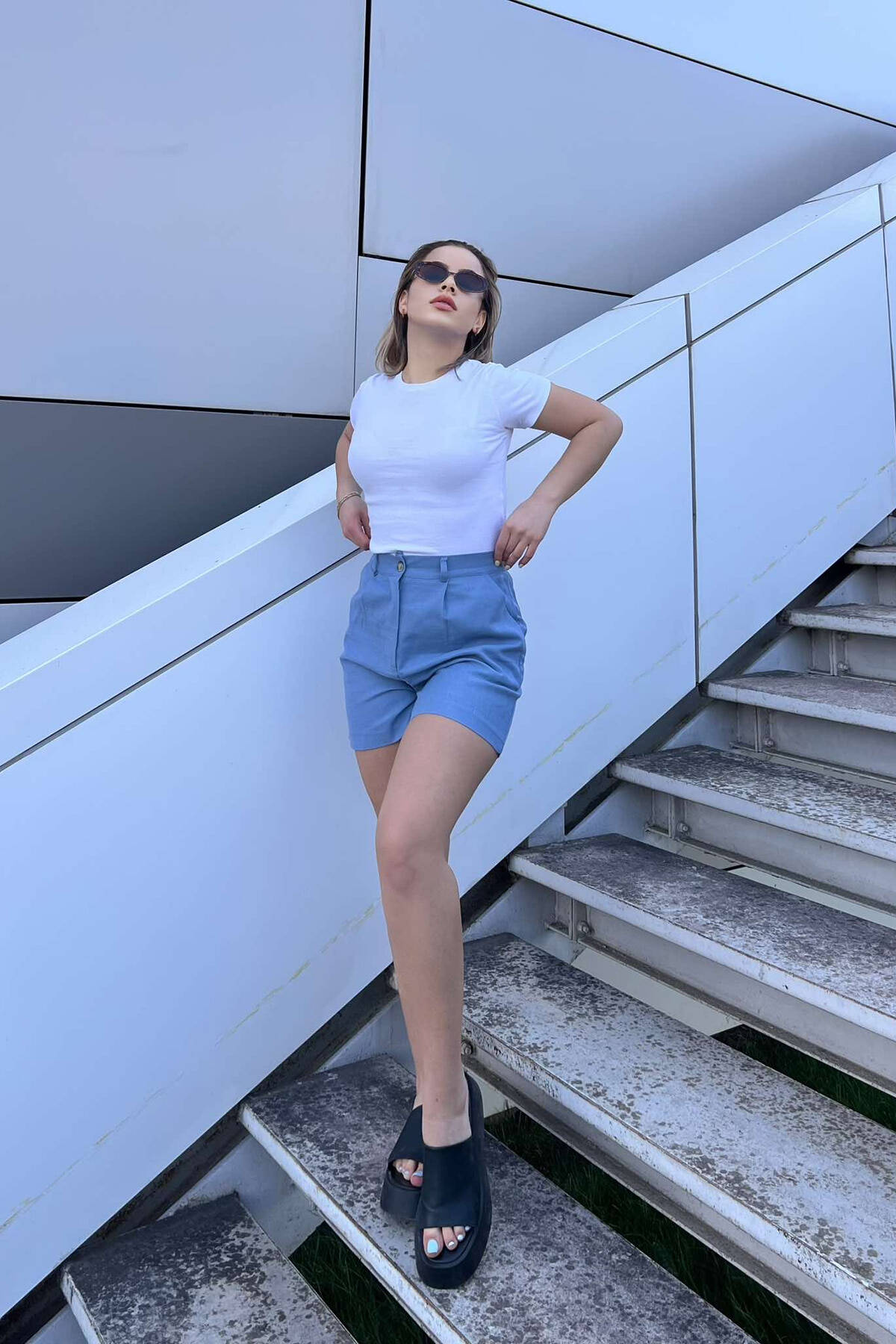 LINEN ONE COLOR WOMEN SHORTS LIGHTBLUE/BZ