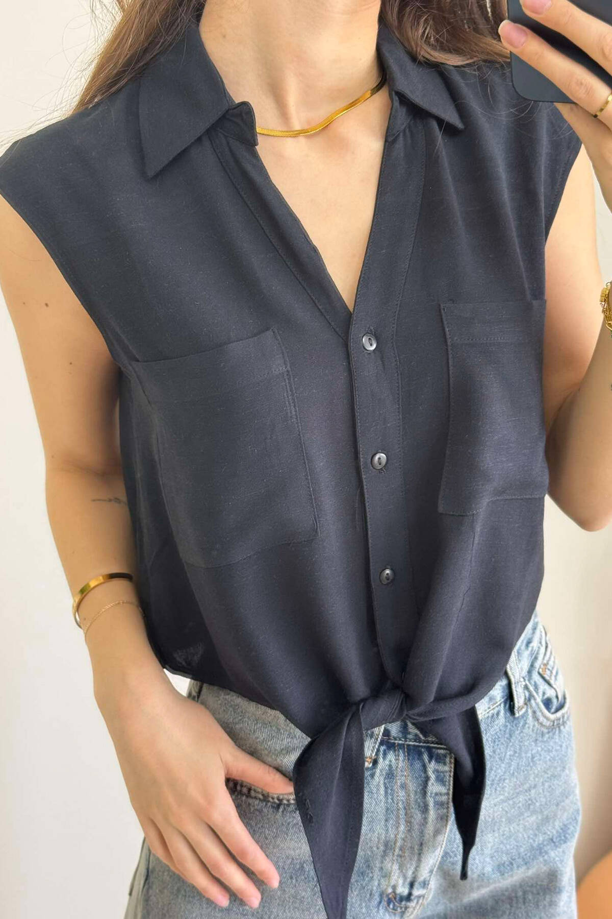 LINEN SHIRT FOR WOMEN BLACK/ E ZEZE