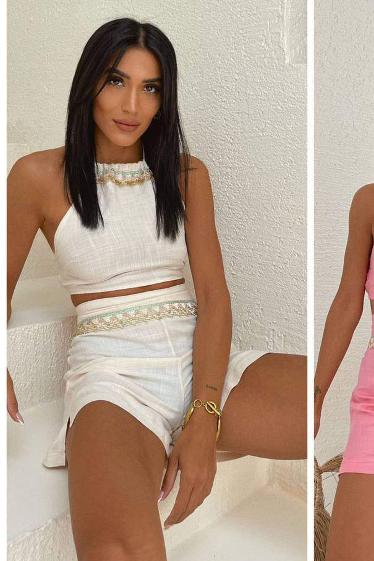 LINEN TOP+SKORTS ONE COLOR WOMAN SET CREAM/KREM