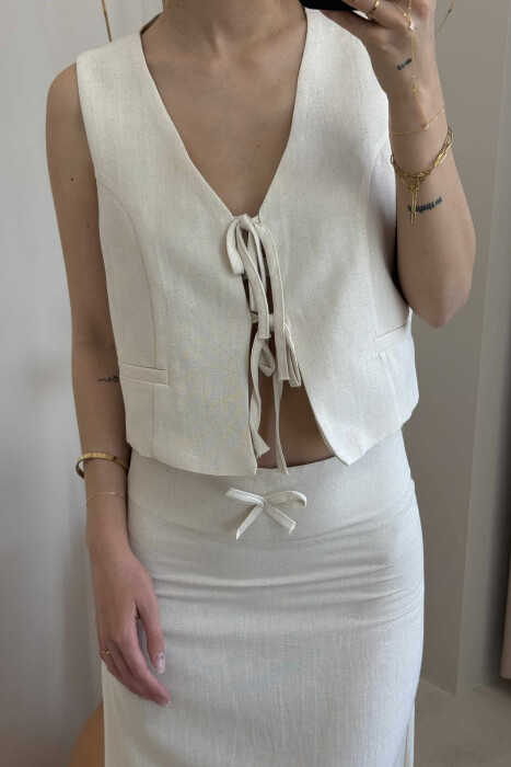 LINEN VEST+SKIRT WOMAN SET CREAM/KREM