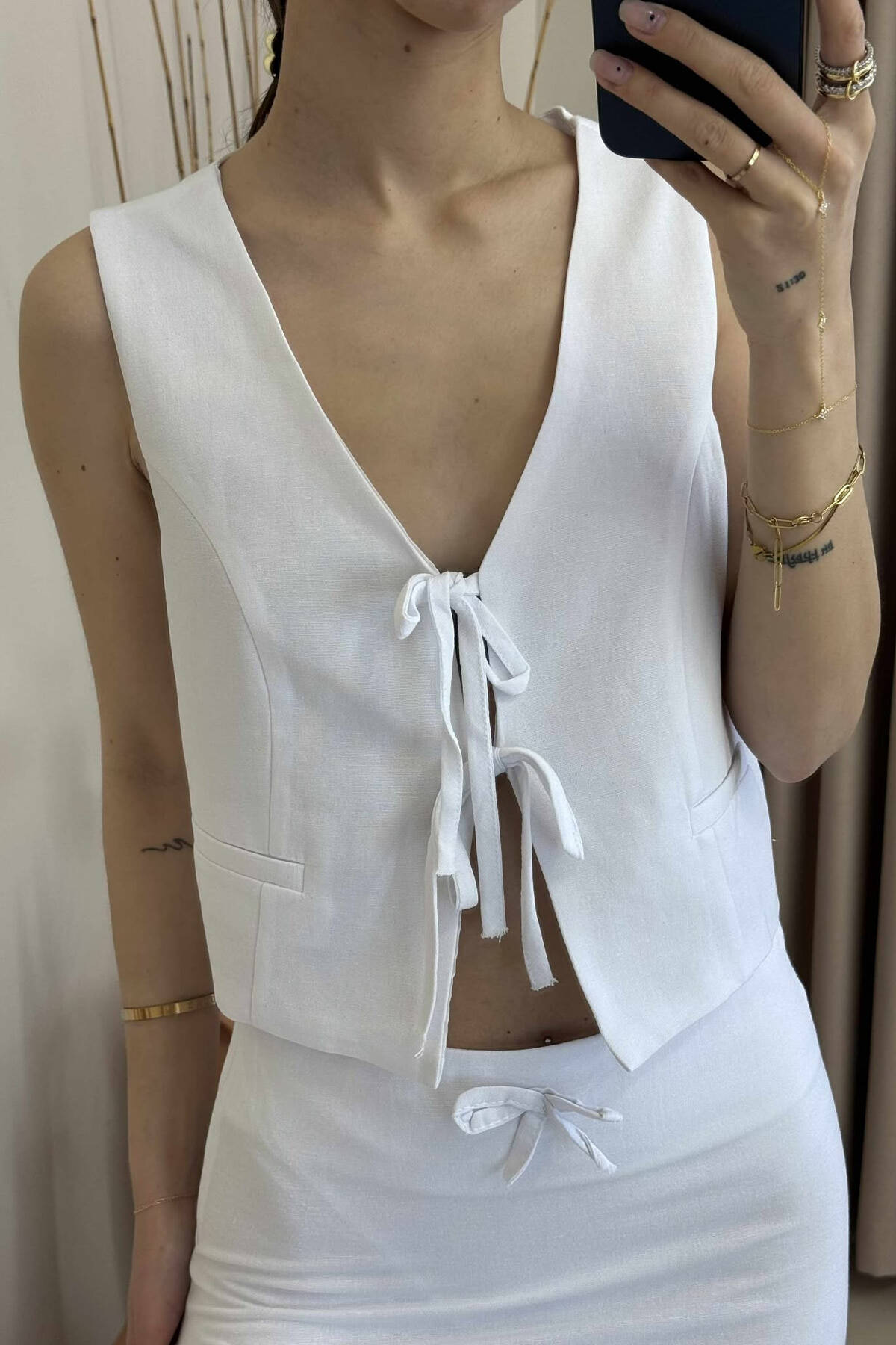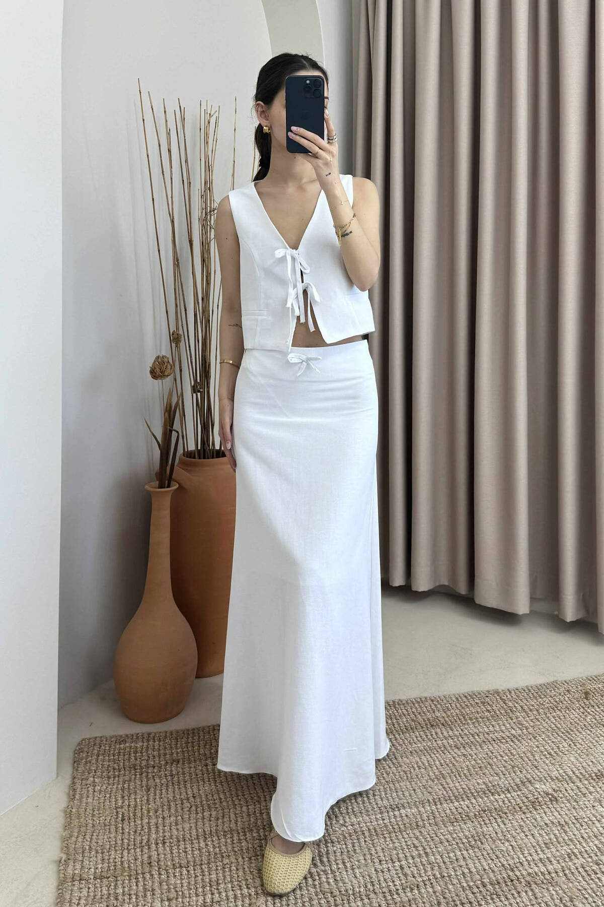 LINEN VEST+SKIRT WOMAN SET WHITE-E BARDHE