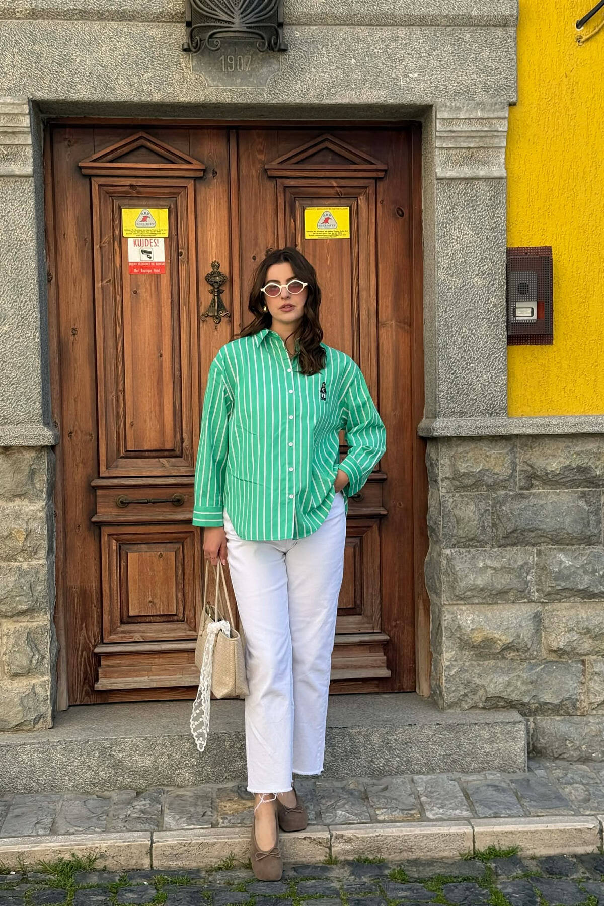 LINES DESIGN BEAR LOGO WOMAN SHIRT GREEN/JESHILE