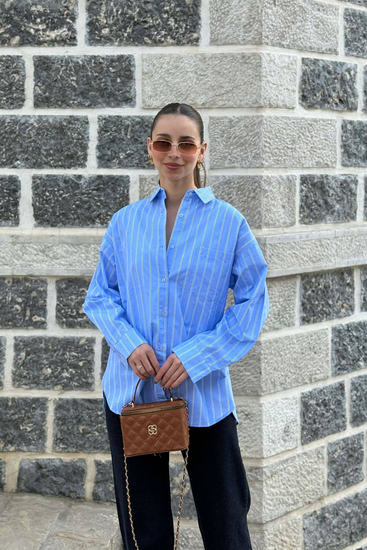 LINES DESIGN FRONT POCKET WOMAN SHIRT LIGHTBLUE/BZ