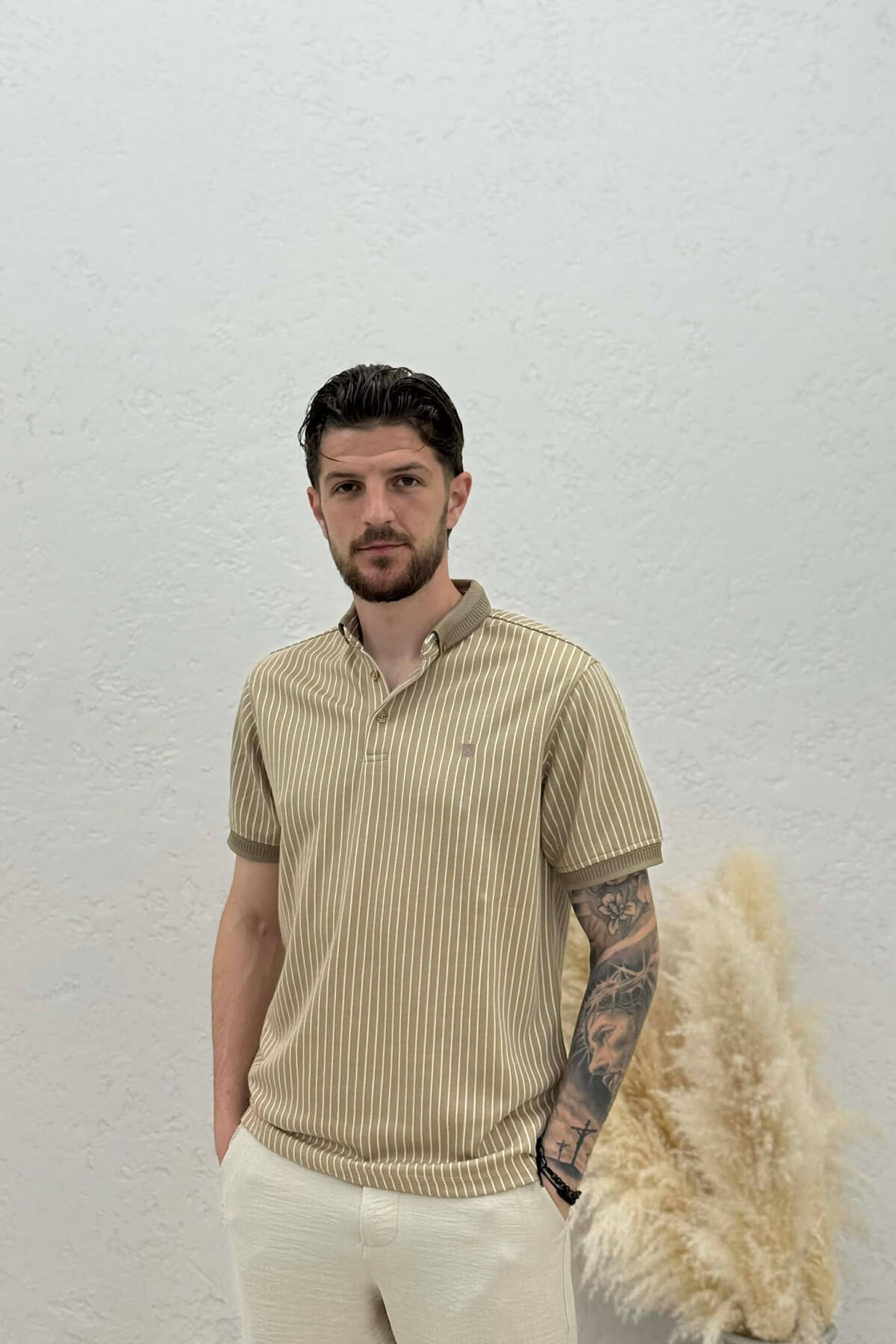 TEXTURED POLO NECK MEN T SHIRT BEIGE/BEZHE