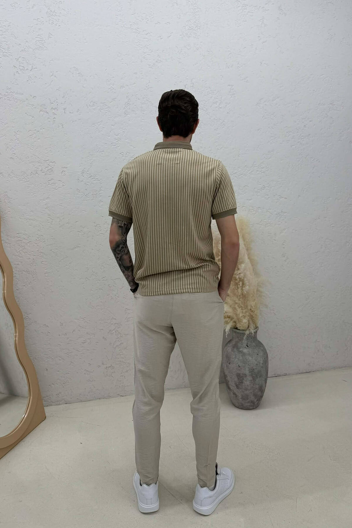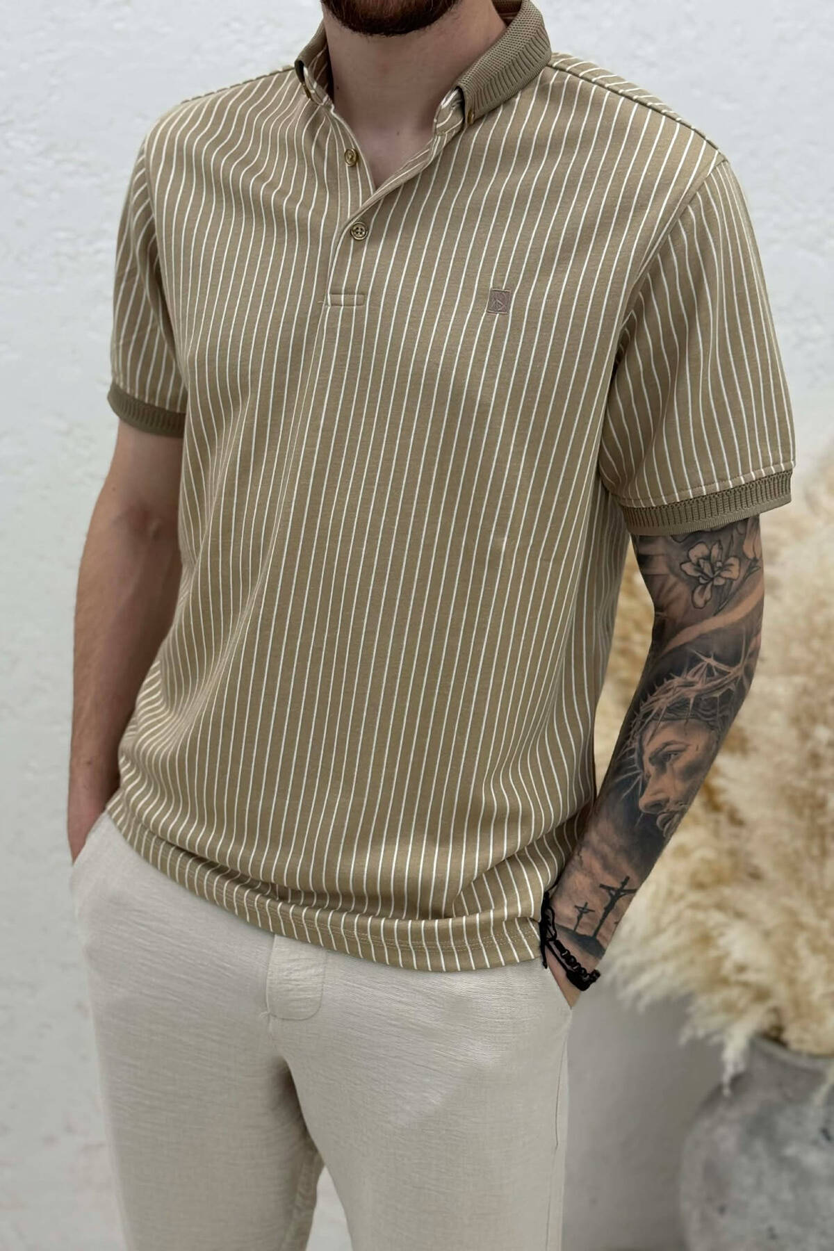 STRIPED DESIGN POLO NECK MEN T-SHIRT GREEN/JESHILE