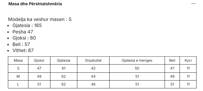 Size chart