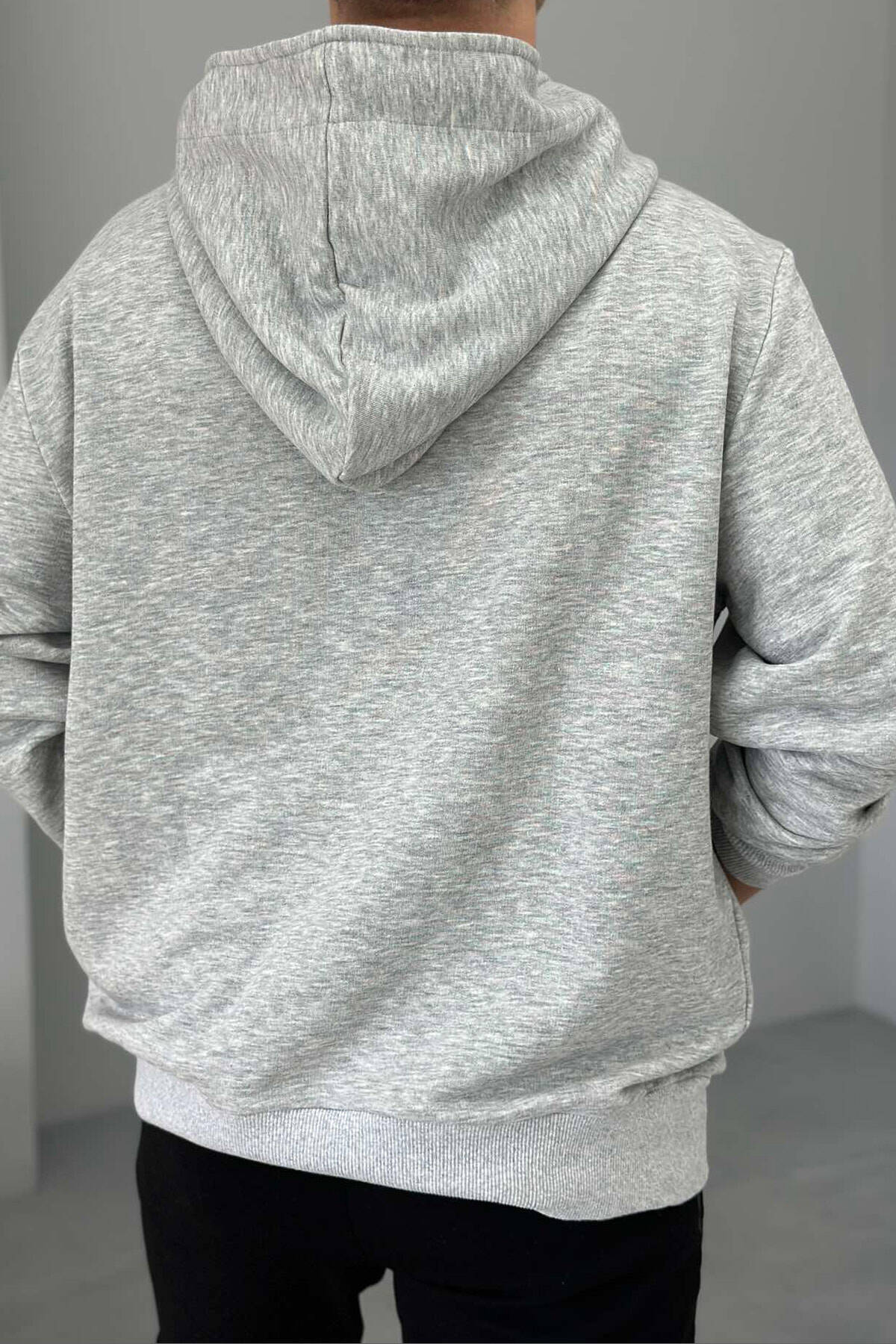 SIMPLE DESIGN ONE COLOR MEN HOODIE GREY/GRI