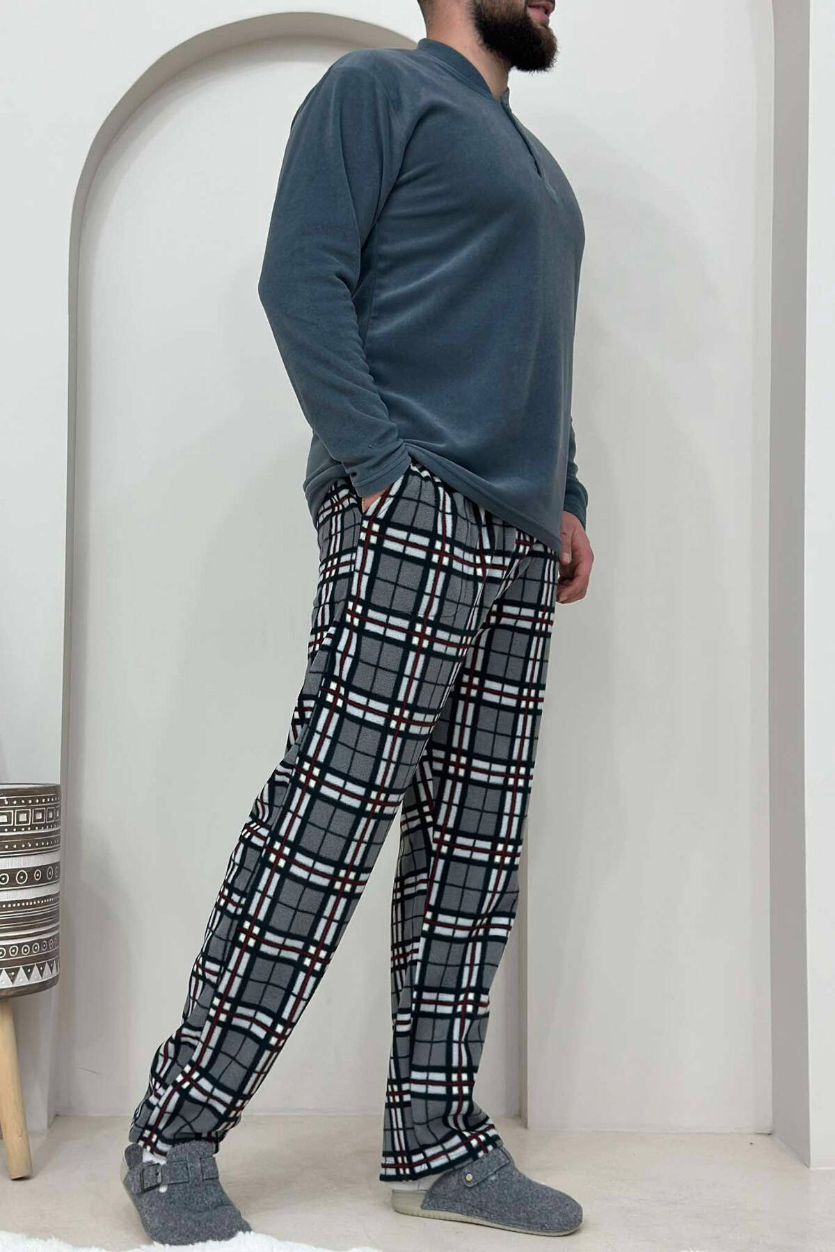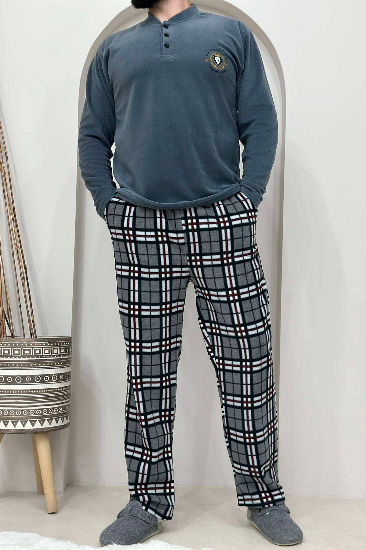 BUTTONED SIMPLE MEN PYJAMAS DARK GREY/GEE