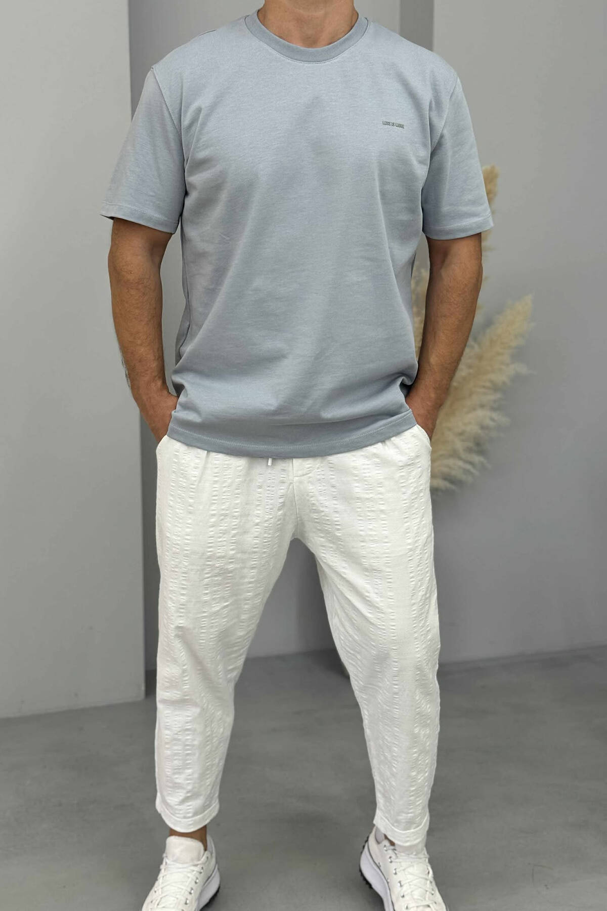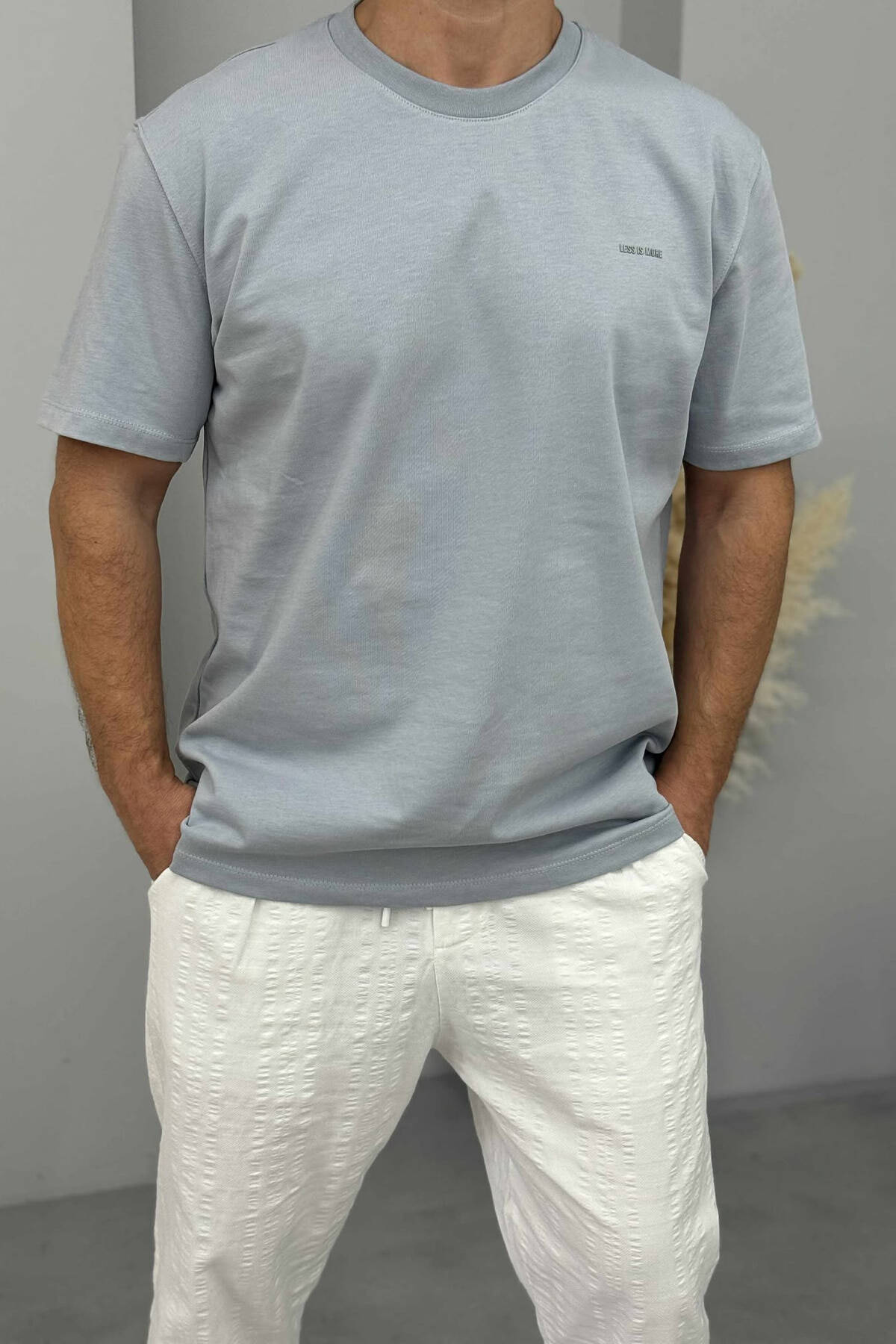 T-SHIRT I THJESHTË ME SHKRIME PËR MESHKUJ NË NGJYRËN BLU E ZBARDHUR