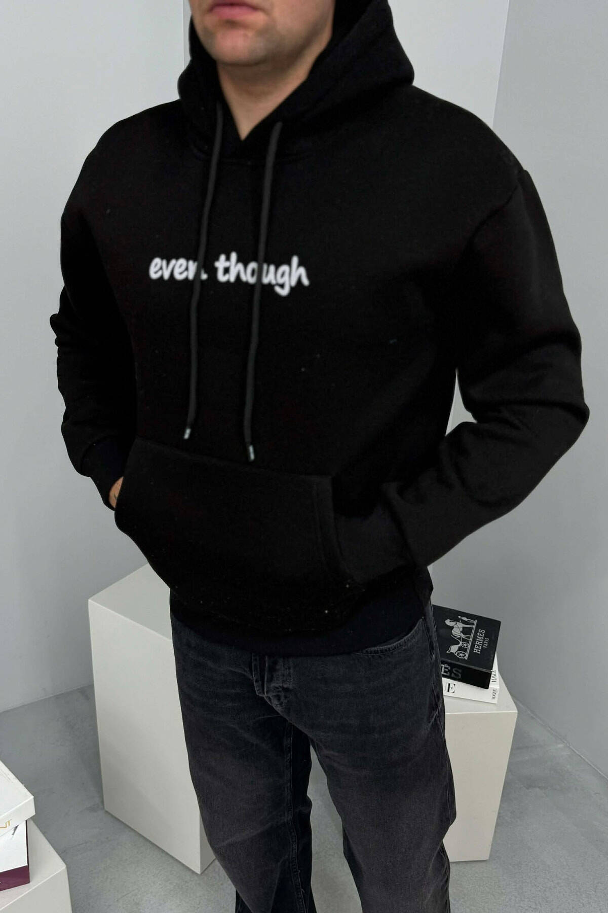LITTLE WRITTINGS & BACK DESIGN FLUFFY MEN HOODIE BLACK/ E ZEZE