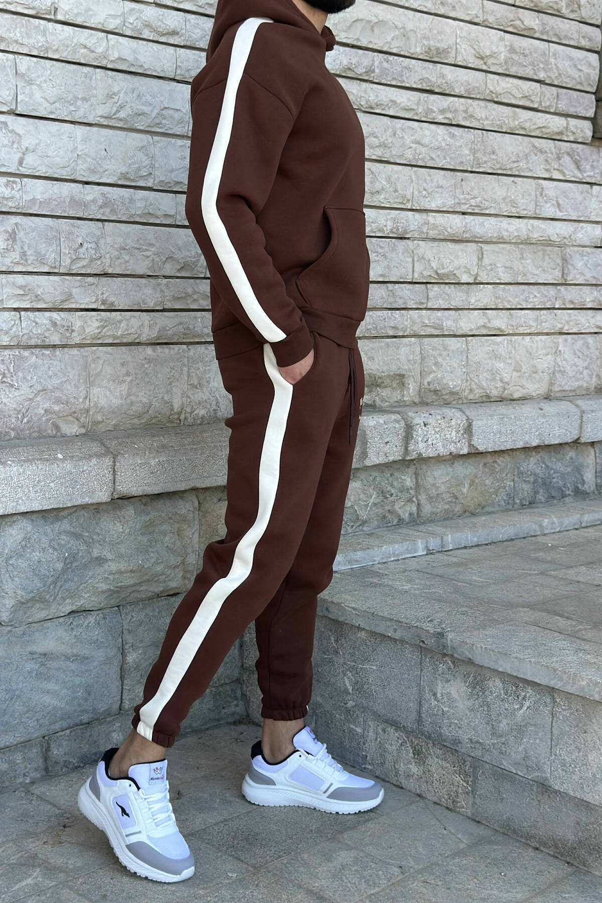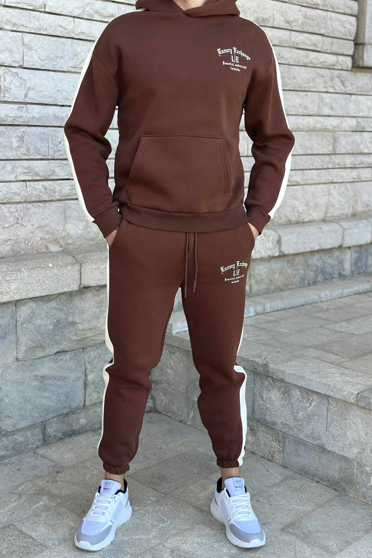 KOSTUM ME PUSH HOODIE +TUTA ME SHKRIME TË VOGLA PËR MESHKUJ NË NGJYRËN KAFE