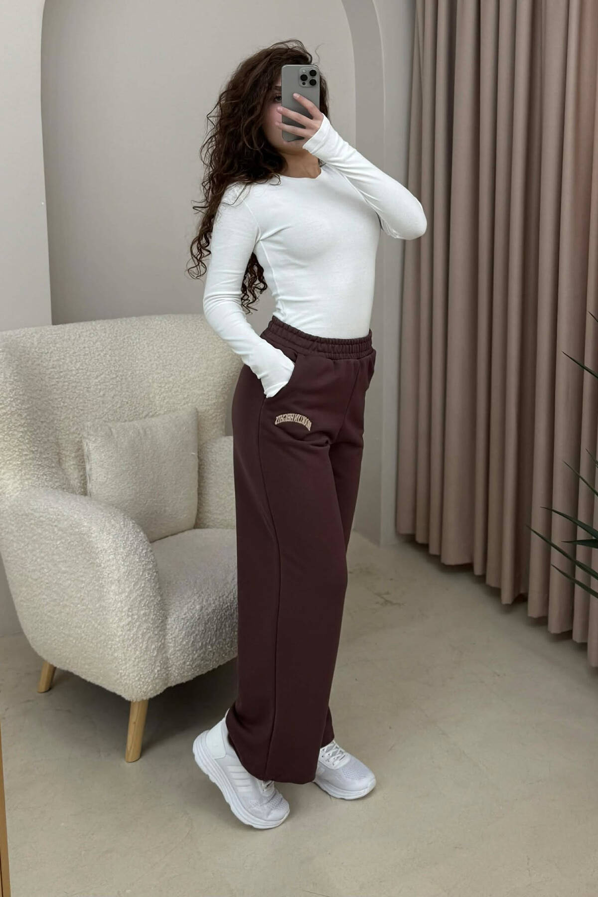 ONE COLOR BELT DETAIL WOMEN SWEATPANTS BROWN/KAFE