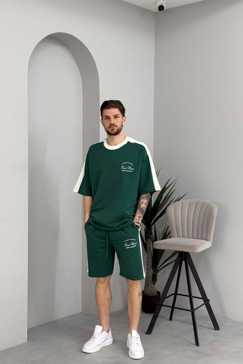 SET T-SHIRT ME SHKRIME TE VOGLA + TUTA TE SHKURTRA PER MESHKUJ NE NGJYRE JESHILE