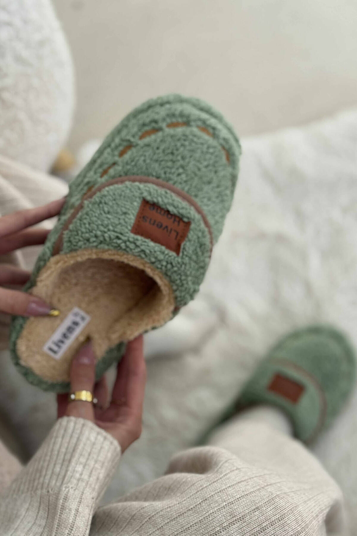 ONE COLOR TEDDY WOMEN SLIPPERS MINT/MENTE