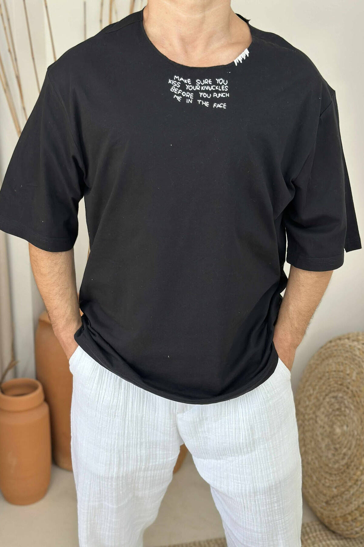 LITTLE WRITTNGS ONE COLOR MEN T-SHIRT BLACK/ E ZEZE