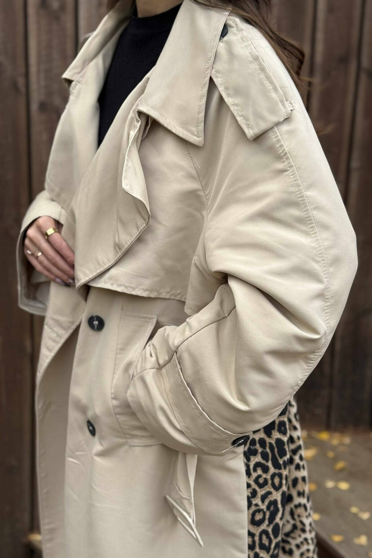 LONG BACK LEO DESIGN WOMEN TRENCH COAT BEIGE/BEZHE