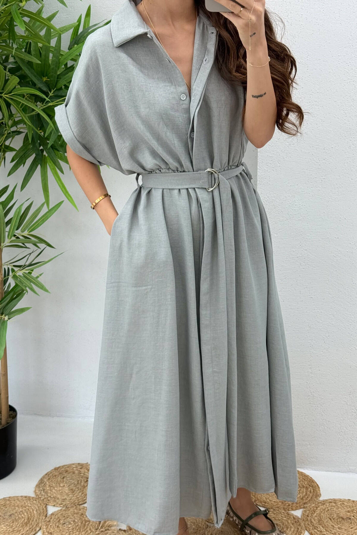 FUSTAN ME BUTONA PËR FEMRA NË NGJYRËN GRI E ZBARDHUR