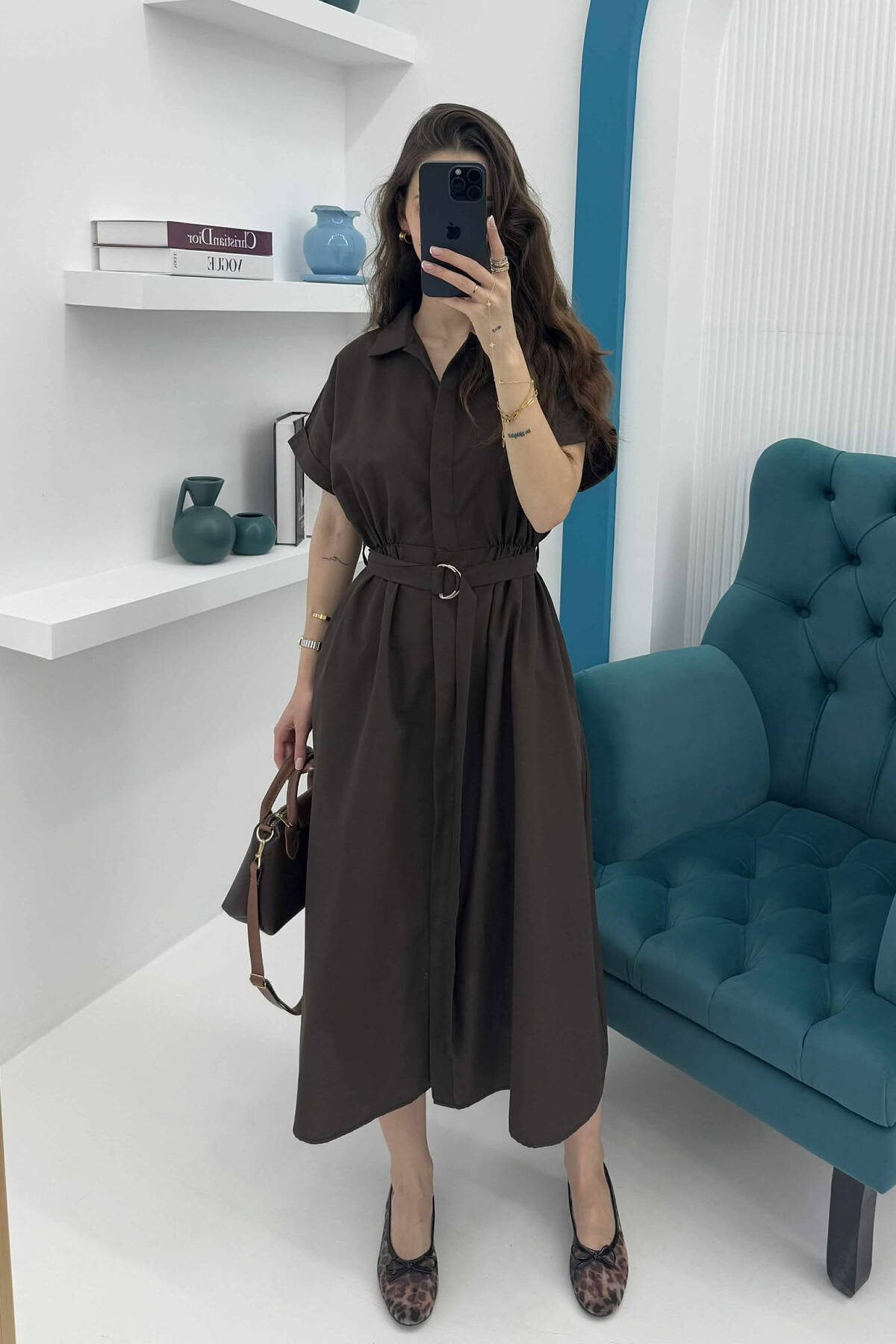 LONG SLEEVE BELT DETAIL WOMAN DRESS BROWN/KAFE