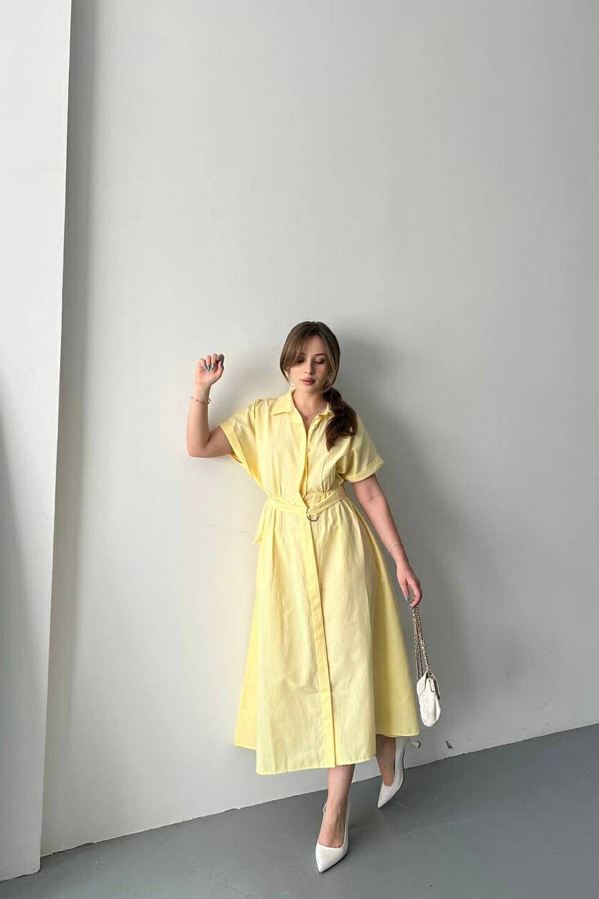 LONG BUTTON SIMPLE WOMEN DRESS YELLOW/E VERDHE
