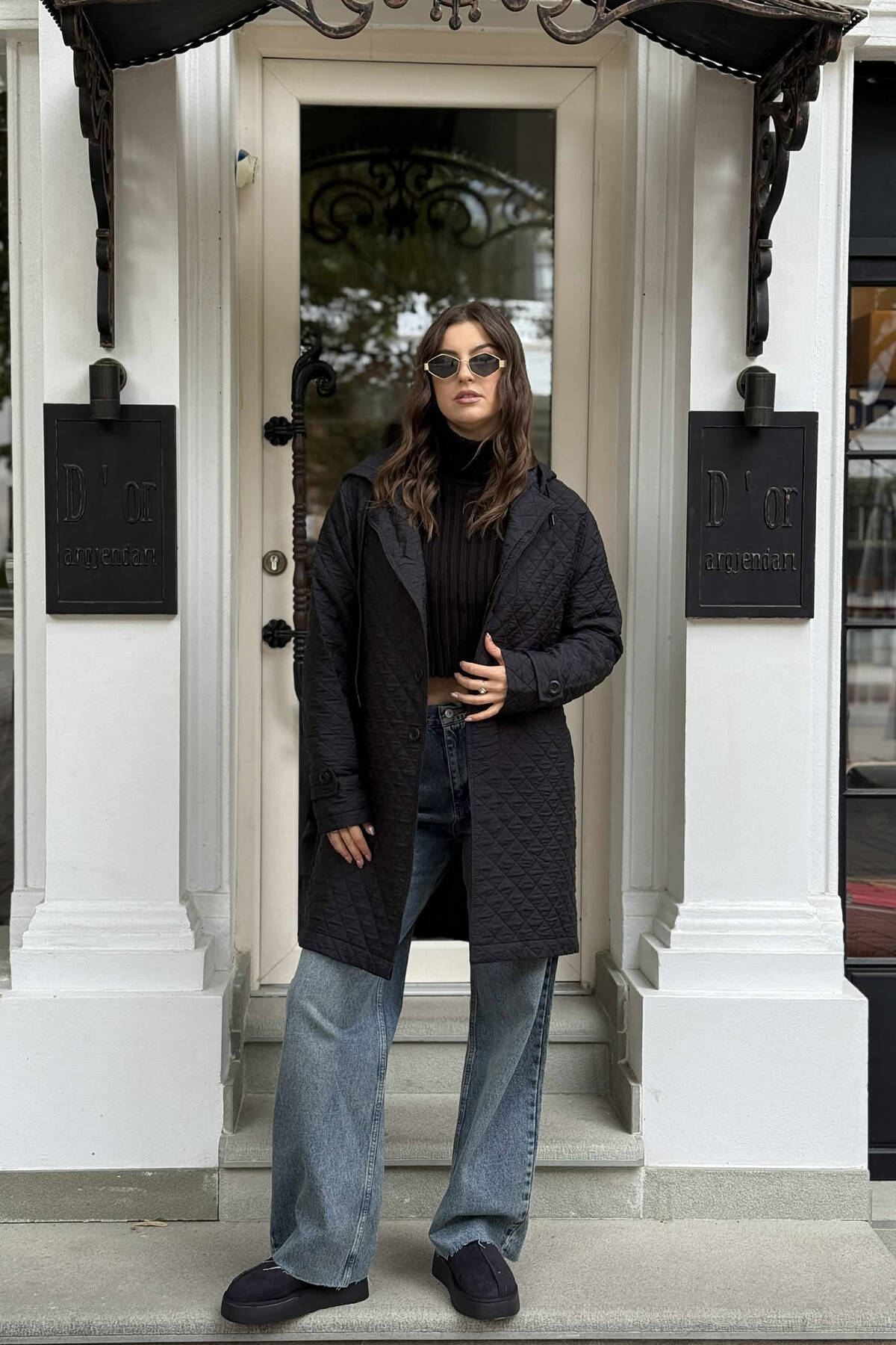 LONG ONE COLOR HOODED WOMEN JACKET BLACK/ E ZEZE
