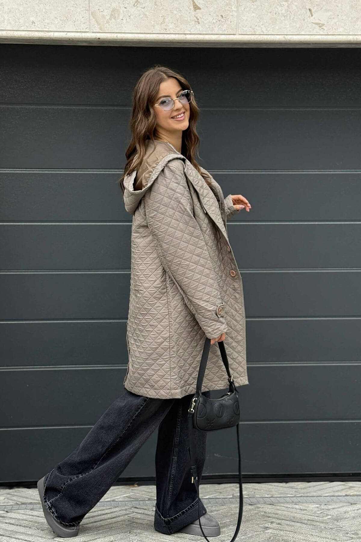 LONG ONE COLOR HOODED WOMEN JACKET GREY/GRI