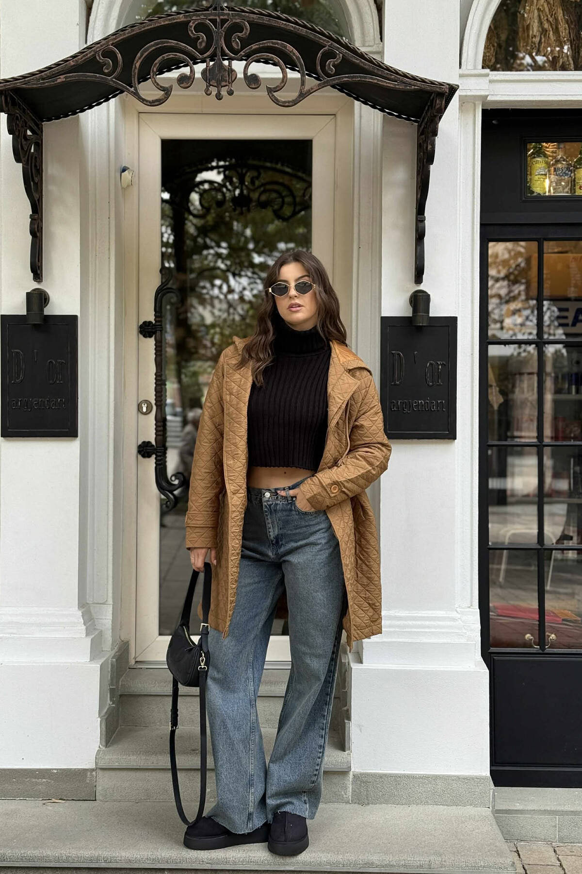 LONG ONE COLOR HOODED WOMEN JACKET LIGHT BROWN/KAZB