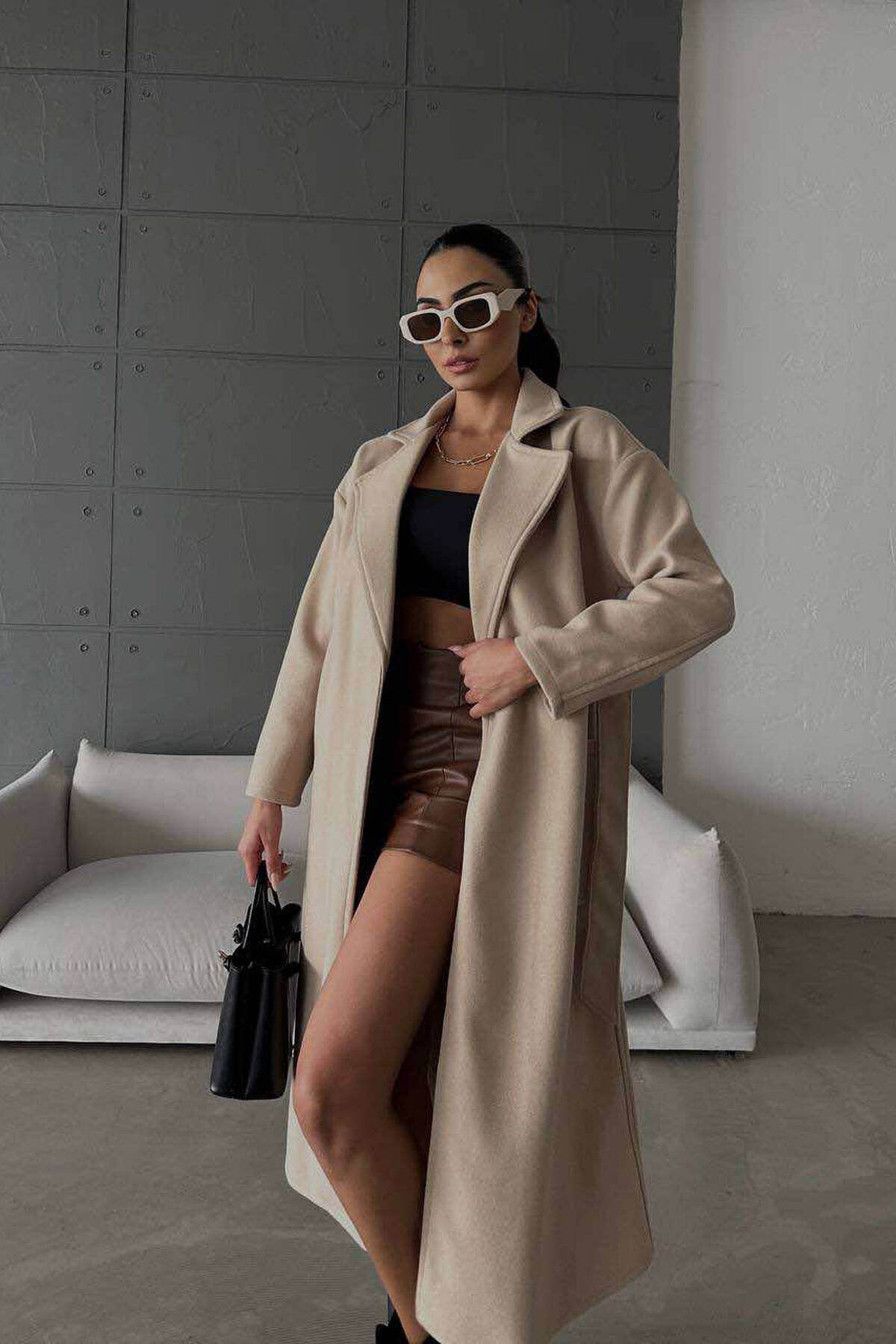 Notify me when its in stockLong Solid Color Coat For Women In Beige