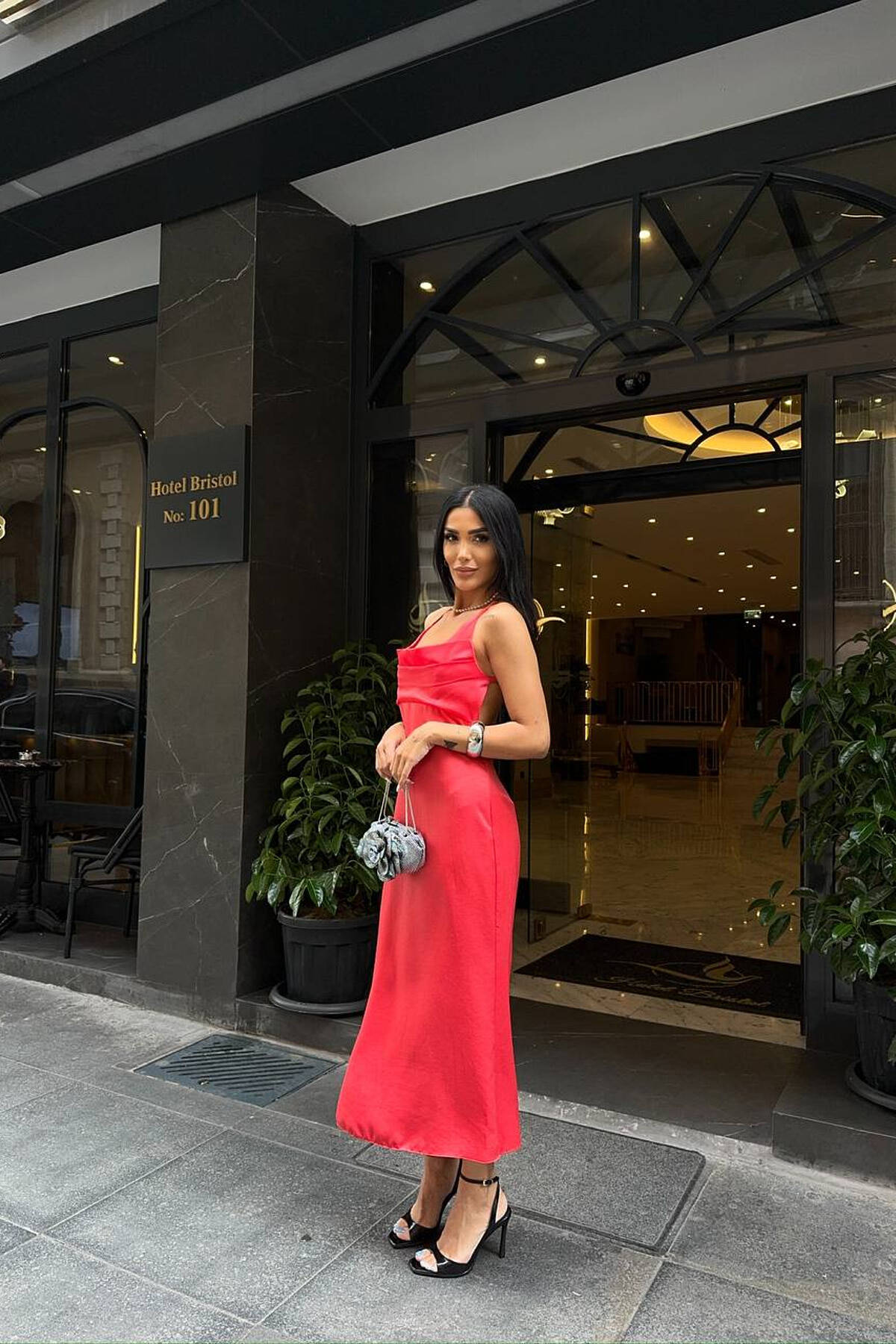LONG OPEN BACK WOMAN DRESS BROWN/KAFE SALMON/SALMON