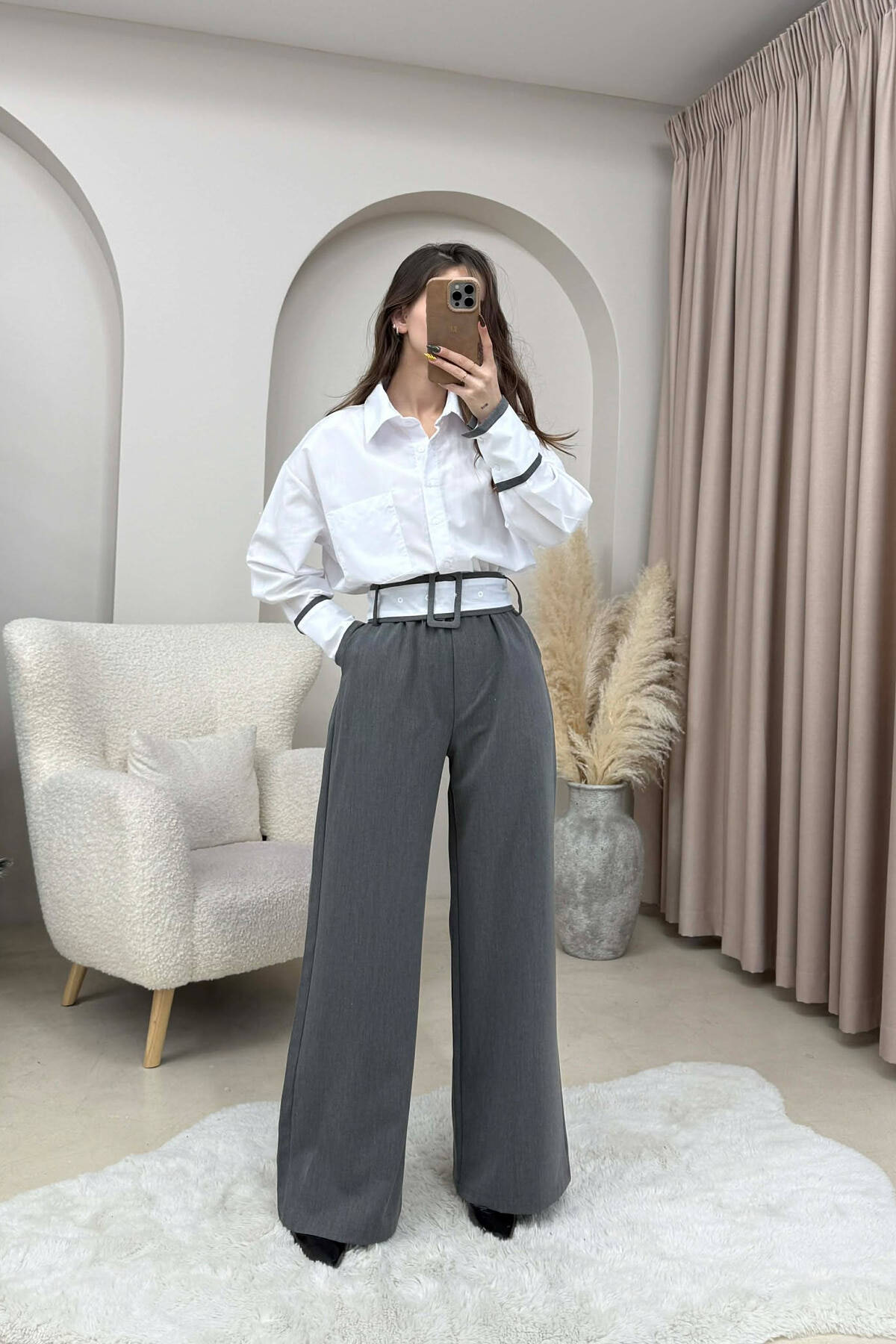 LONG SLEEVE SIMPLE WOMEN JUMPSUIT WHITE/GREY-BAGR