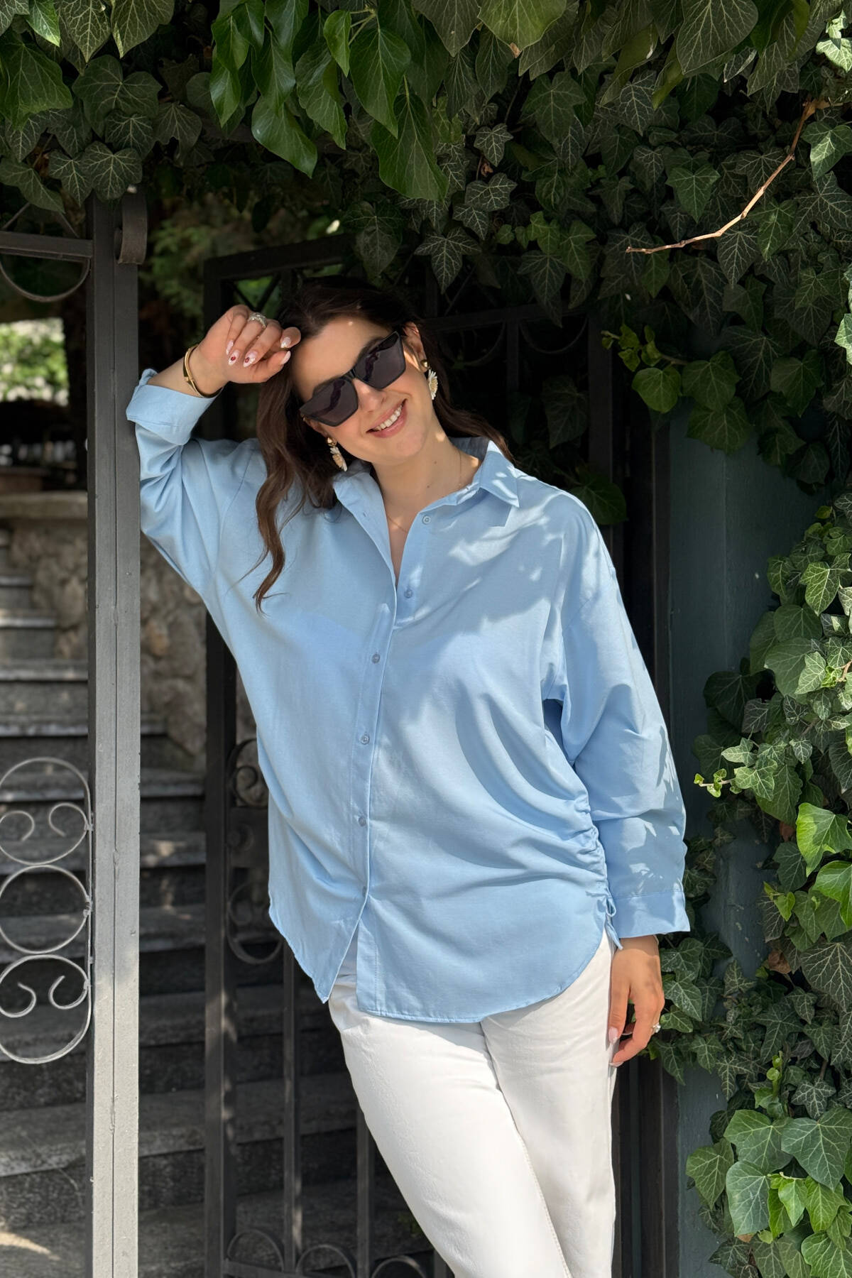 KËMISHË NJË NGJYRËSHE E THJESHTË PËR FEMRA NË NGJYRËN BABY BLUE