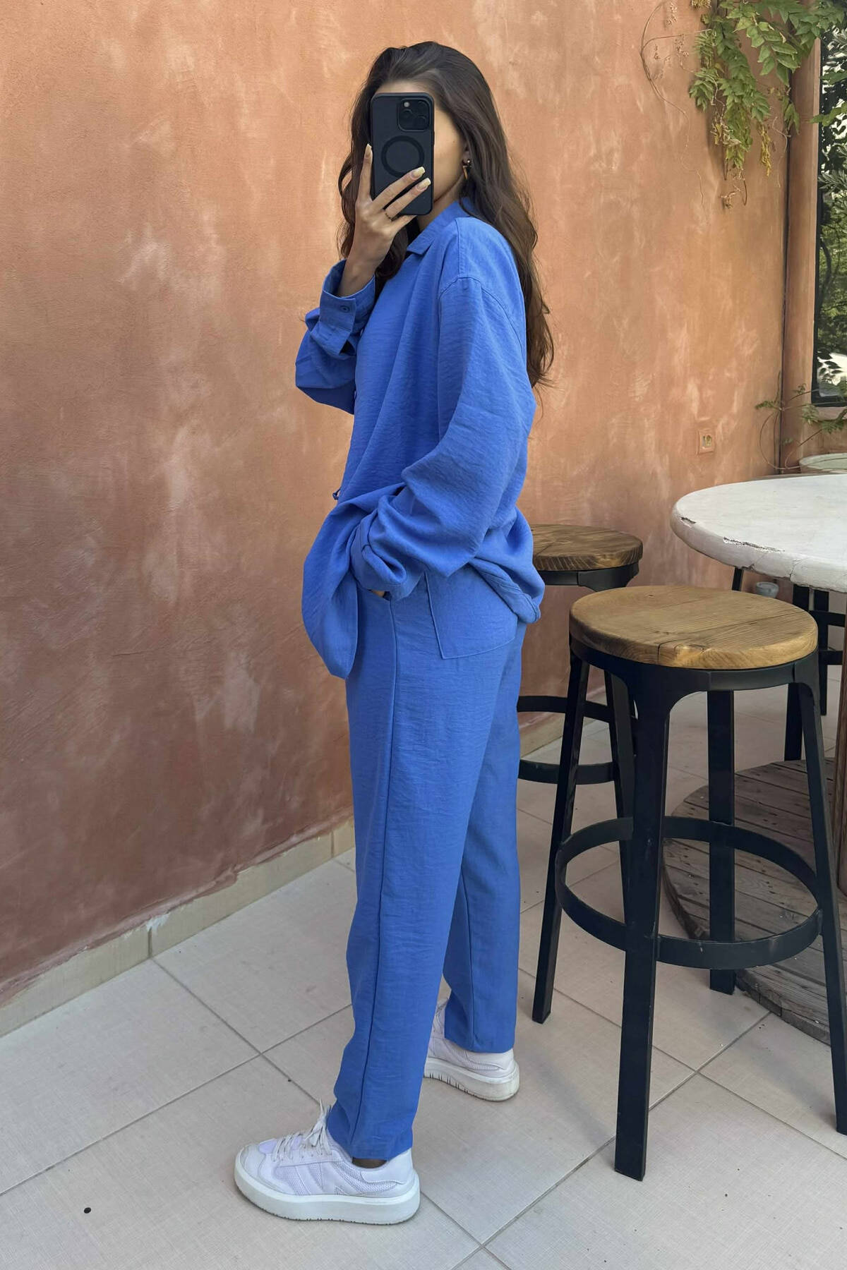 LONG SLEEVES SHIRT+SWEATPANTS WOMEN SET BLUE/BLU