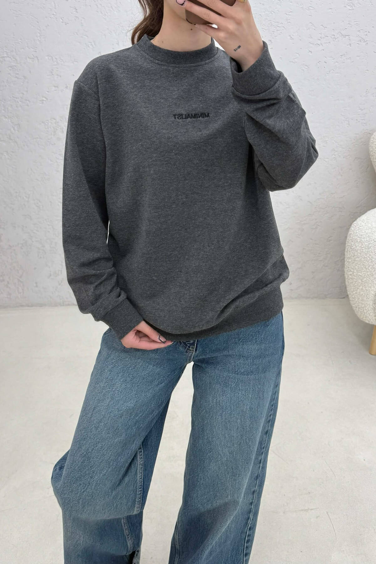 MINIMALIST FRONT WRITTINGS WOMAN SWEATSHIRT DARK GREY/GEE
