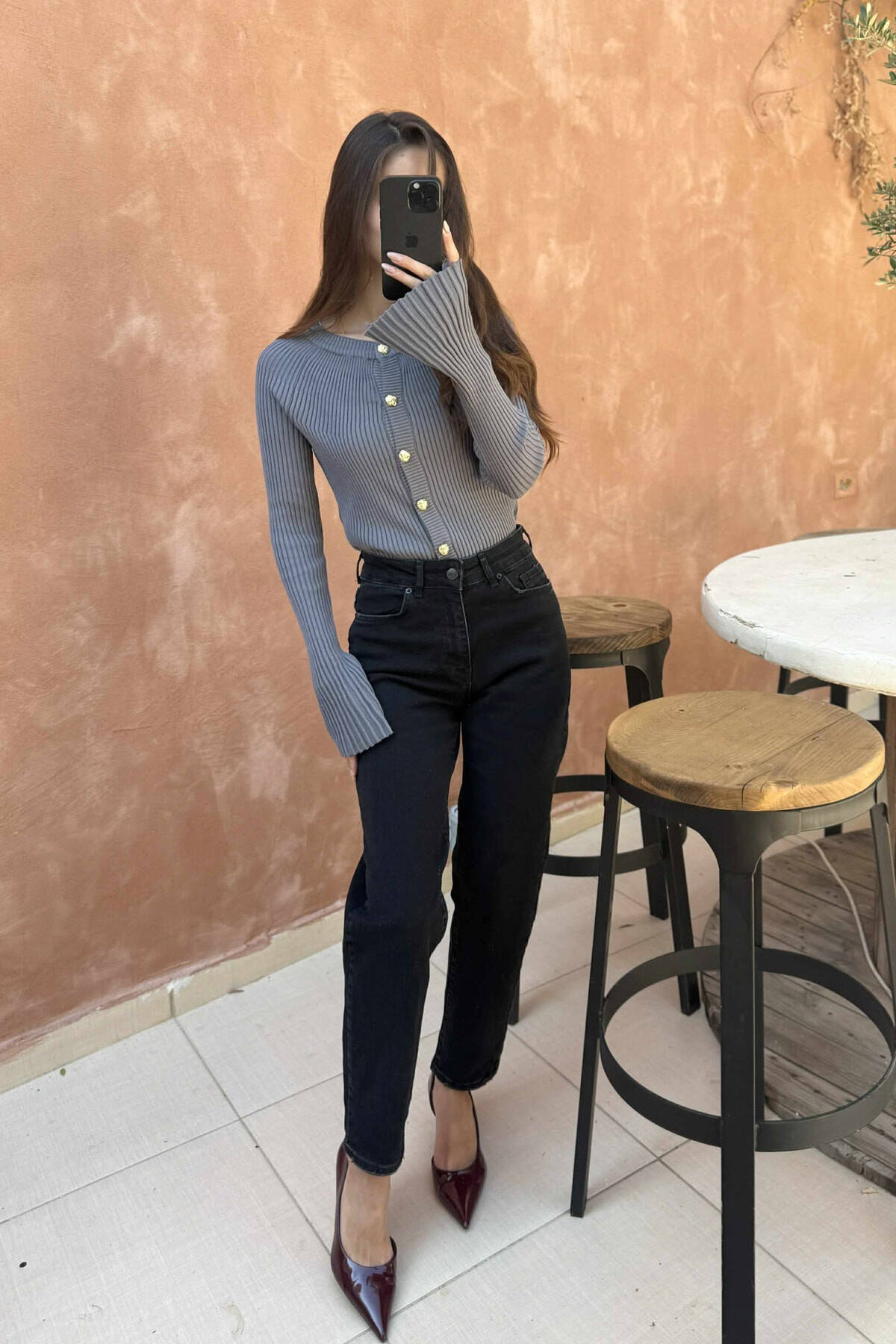 WIDE LEG WOMEN JEANS DARK GREY/GEE